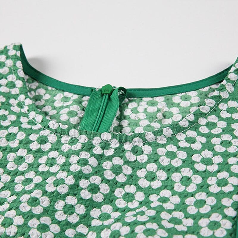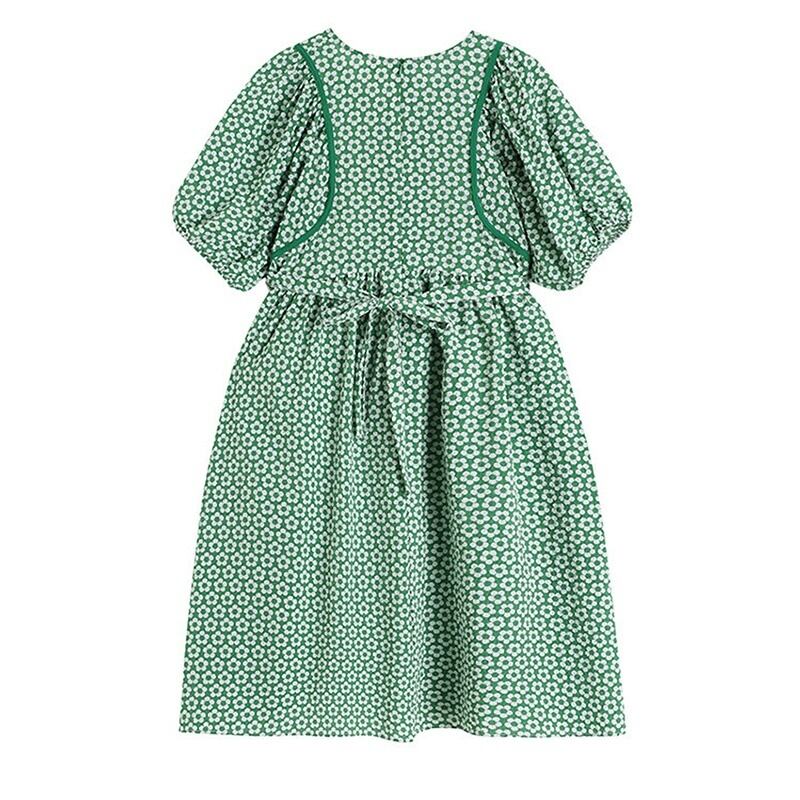 花柄 ラウンドネック パフスリーブ 半袖 ワンピース *on688
