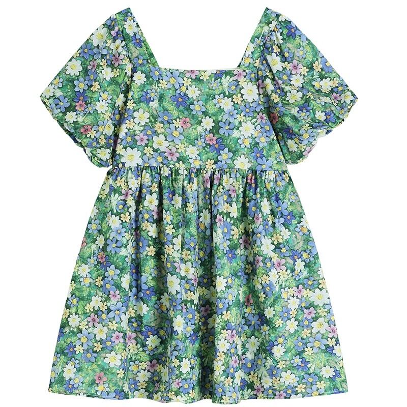 花柄 スクエアネック パフスリーブ 半袖 ワンピース *on689