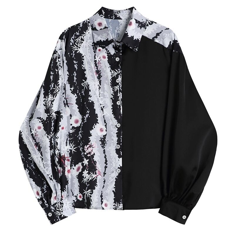 花柄 アシンメトリー 長袖 シャツ ブラウス *bl312