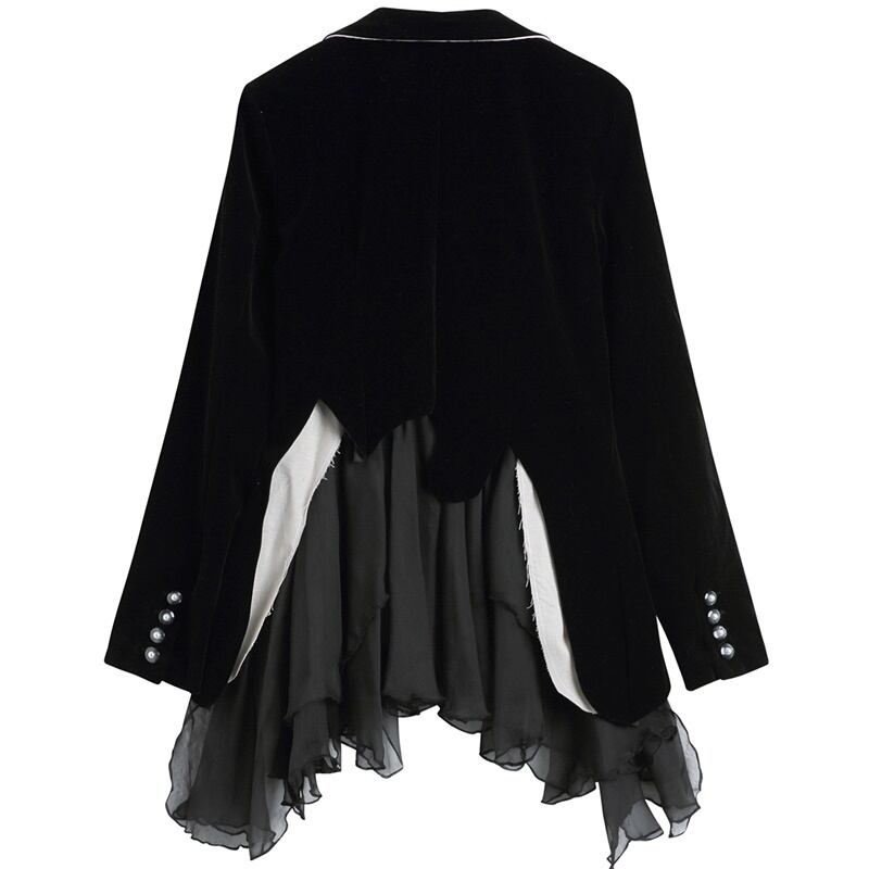 フリル 切り替え ベルベット 長袖 ジャケット *ja043