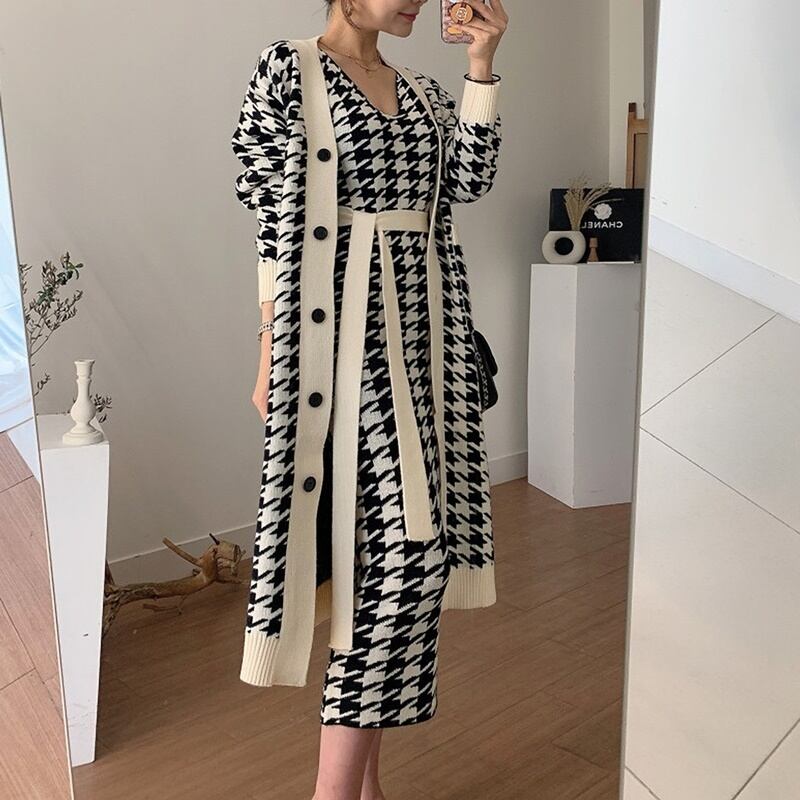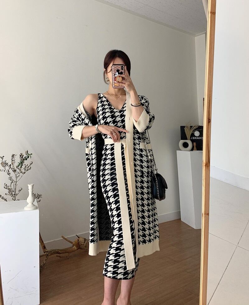 千鳥格子 Vネック ノースリーブ ワンピース セットアップ可 *se065