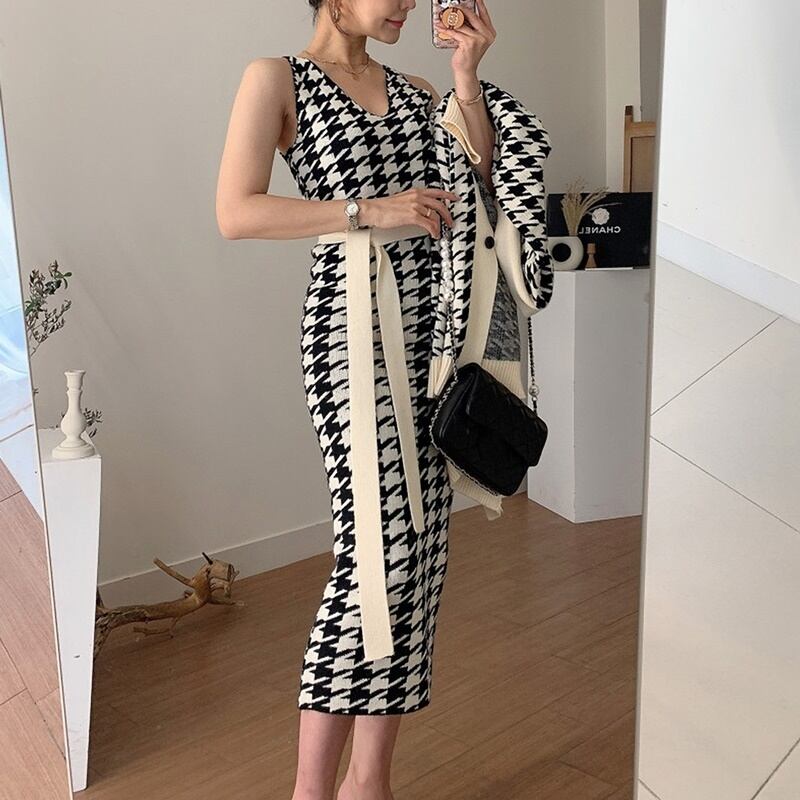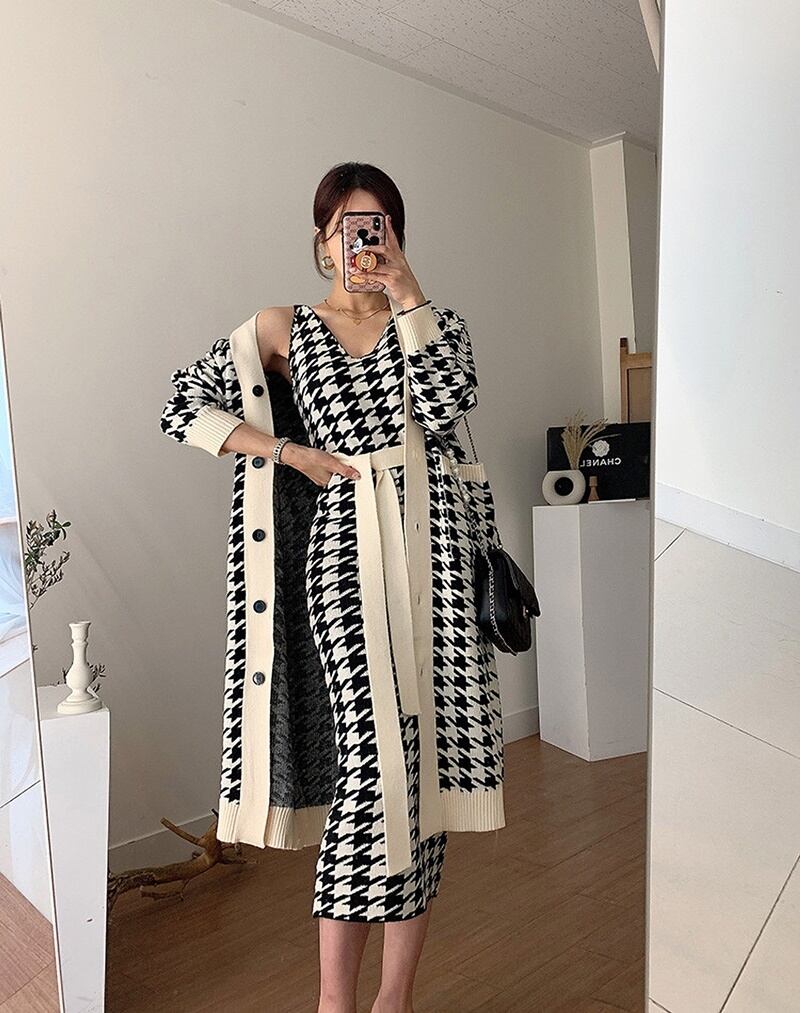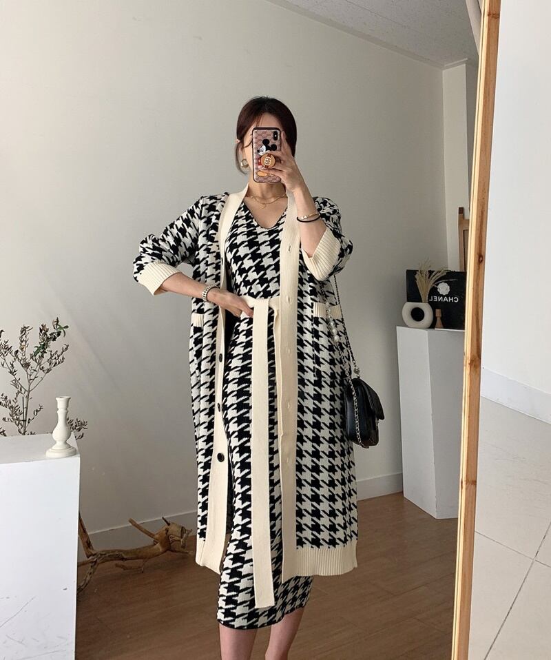 千鳥格子 長袖 カーディガン セットアップ可 *se066