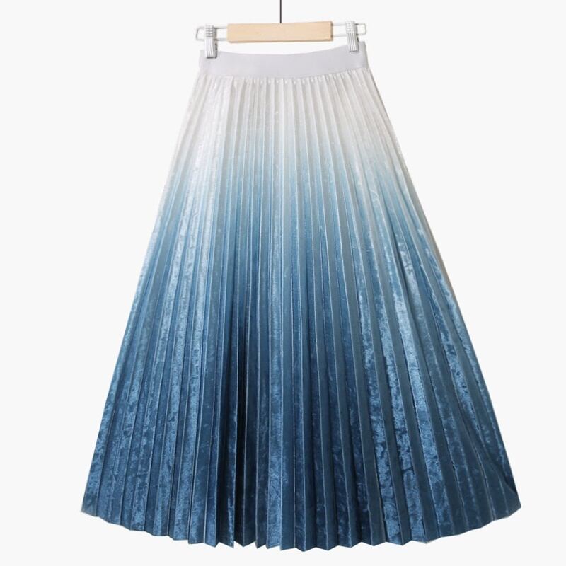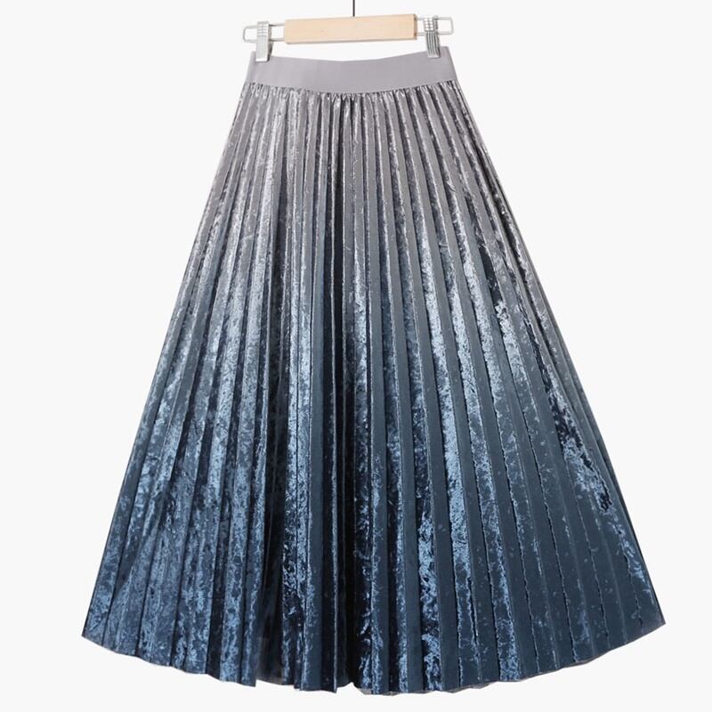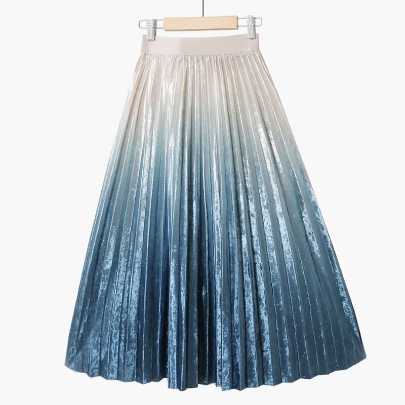 4カラー プリーツ ベルベット 光沢 Aライン スカート *sk148