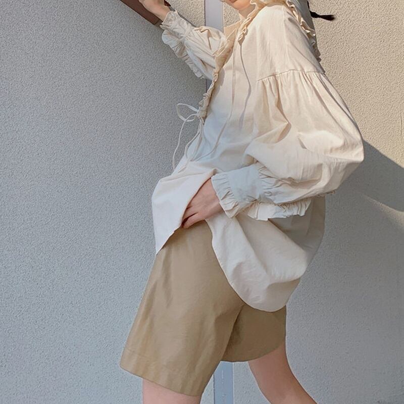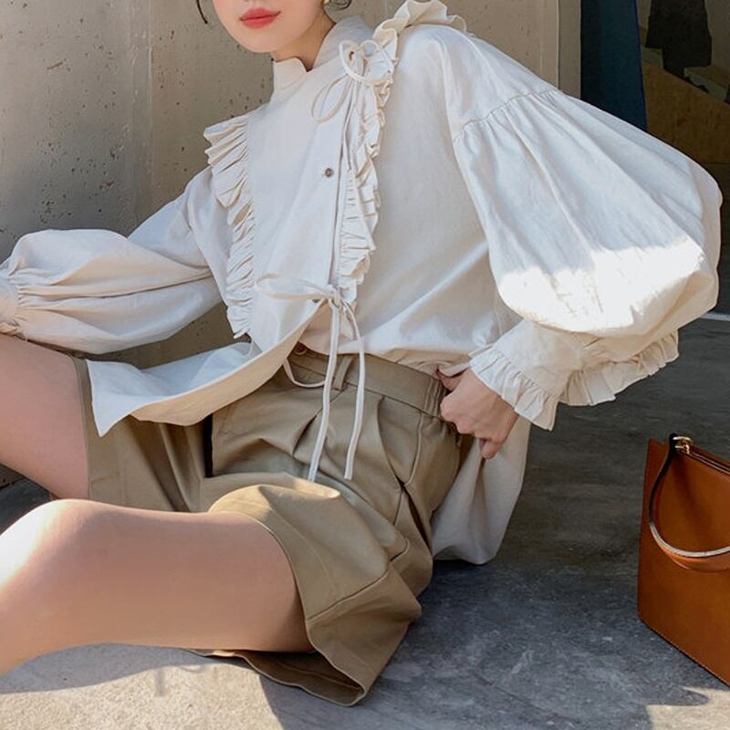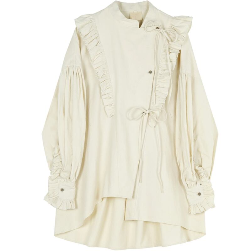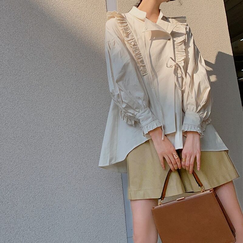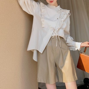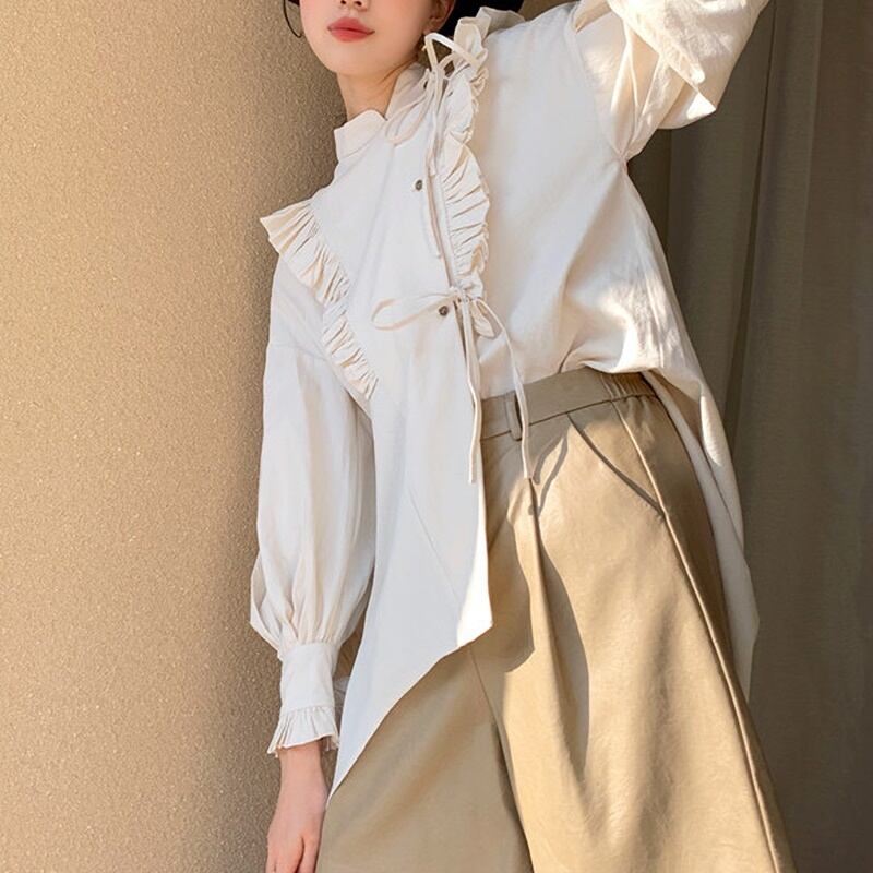 フリル リボン ハイネック 長袖 シャツ ブラウス *bl324