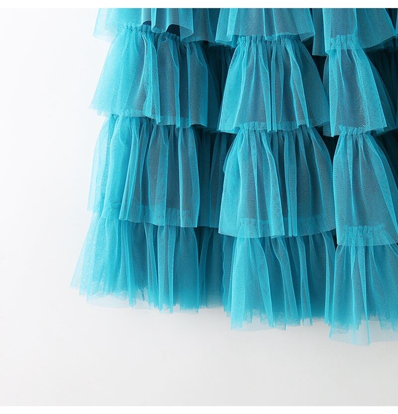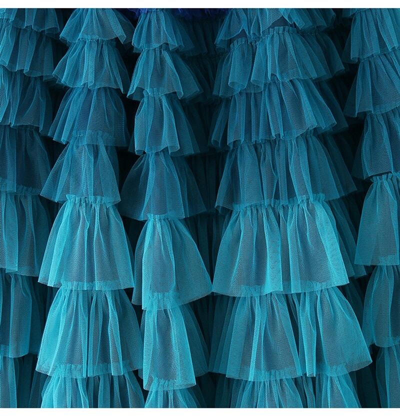 重ねた立体感のあるフリルワークが目を引くスカートはイベントやパーティーなどにもぴったり。