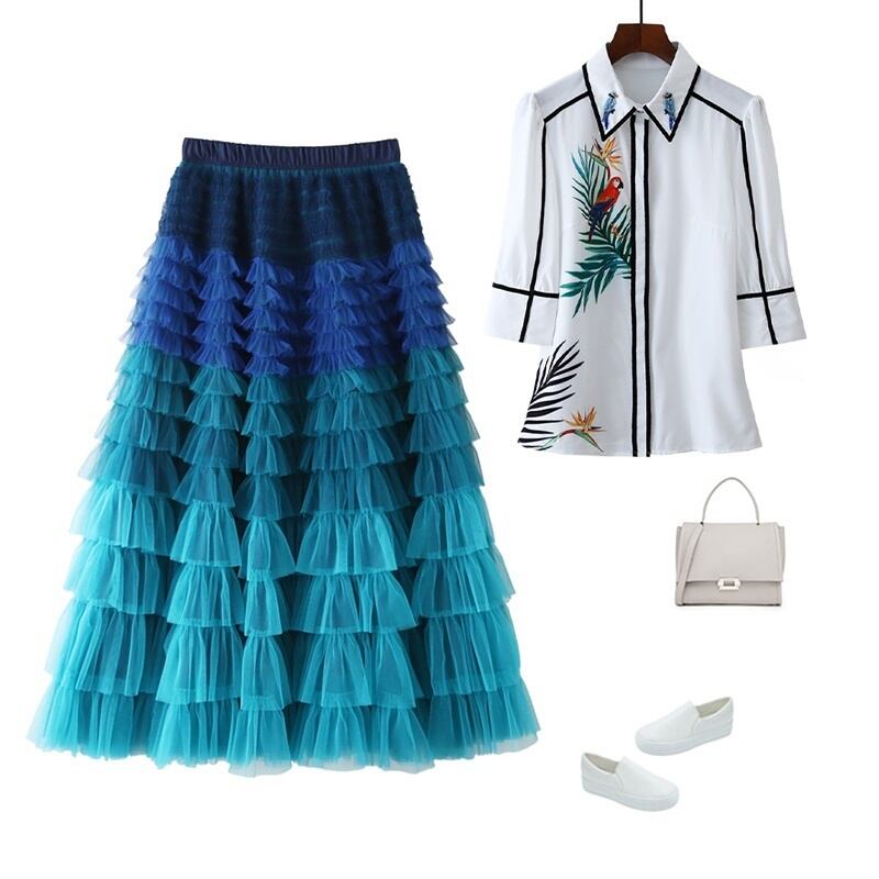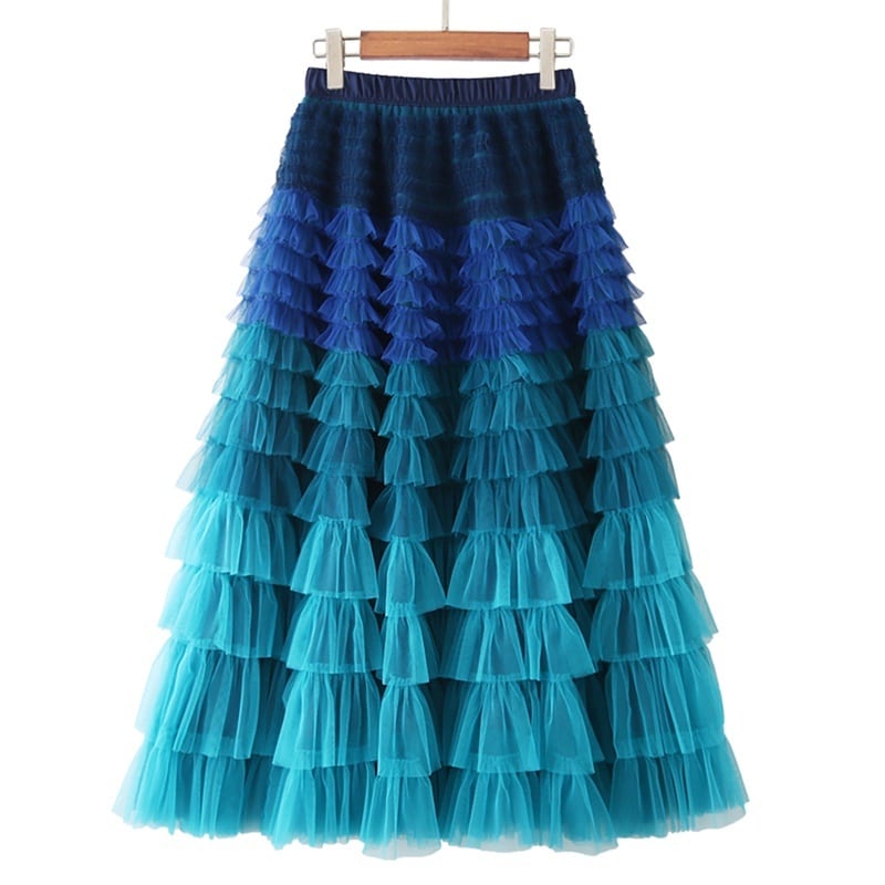 グラデーション フリル メッシュ Aライン スカート *sk152