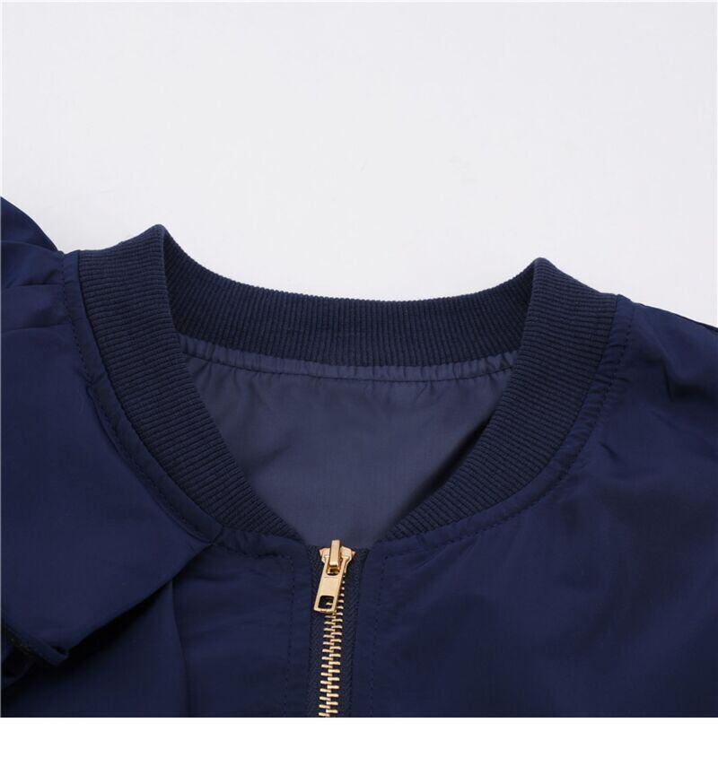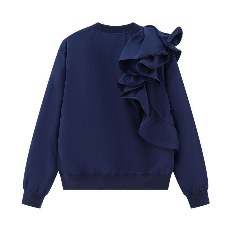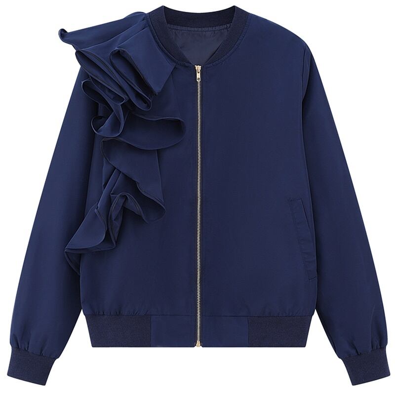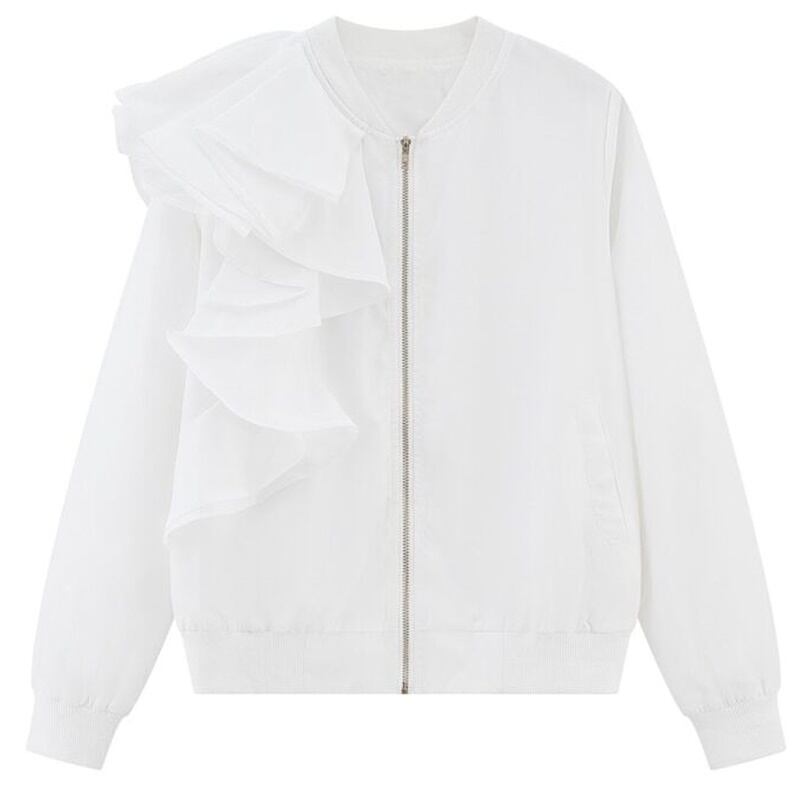 2カラー フリル ラウンドネック ジッパー 長袖 ジャケット *ja045