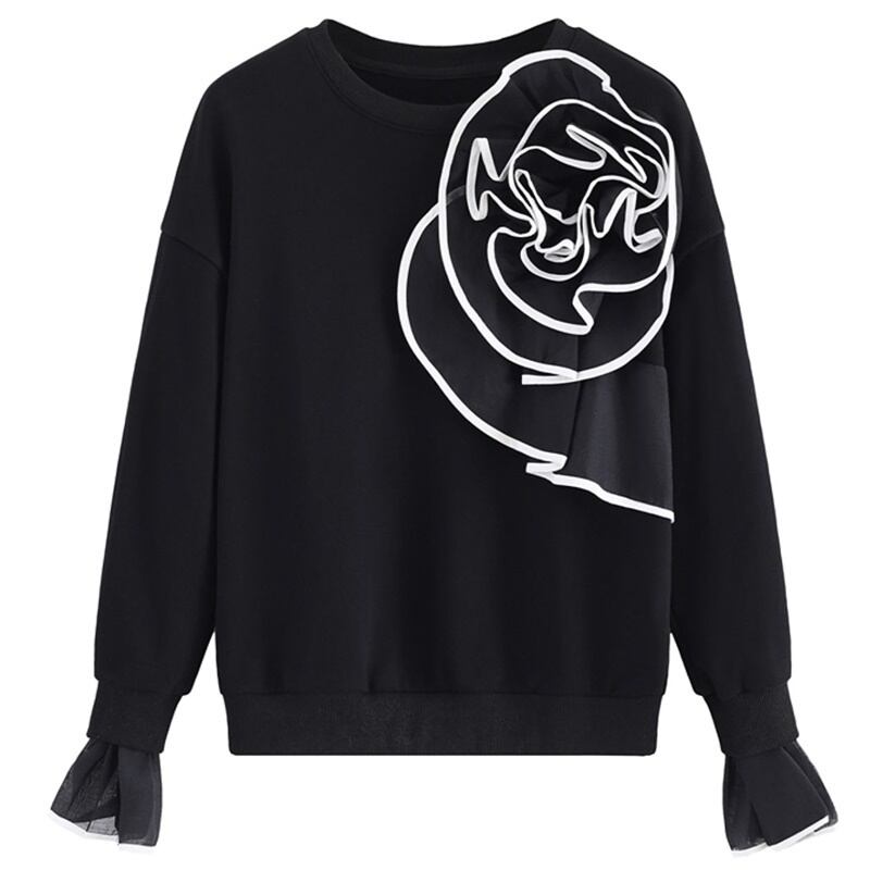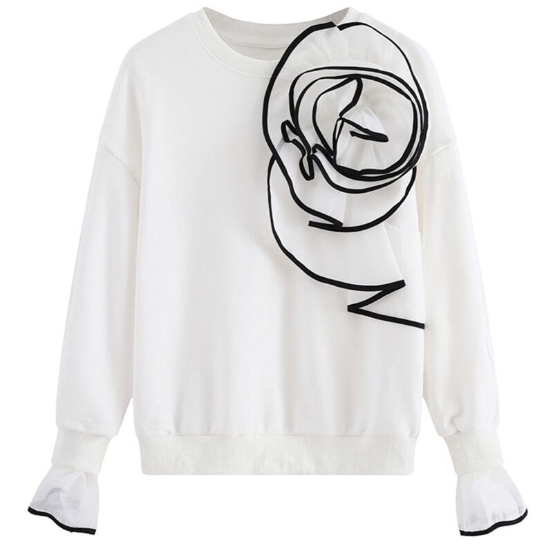 3カラー 立体フラワー ラウンドネック 長袖 シャツ ブラウス *bl328