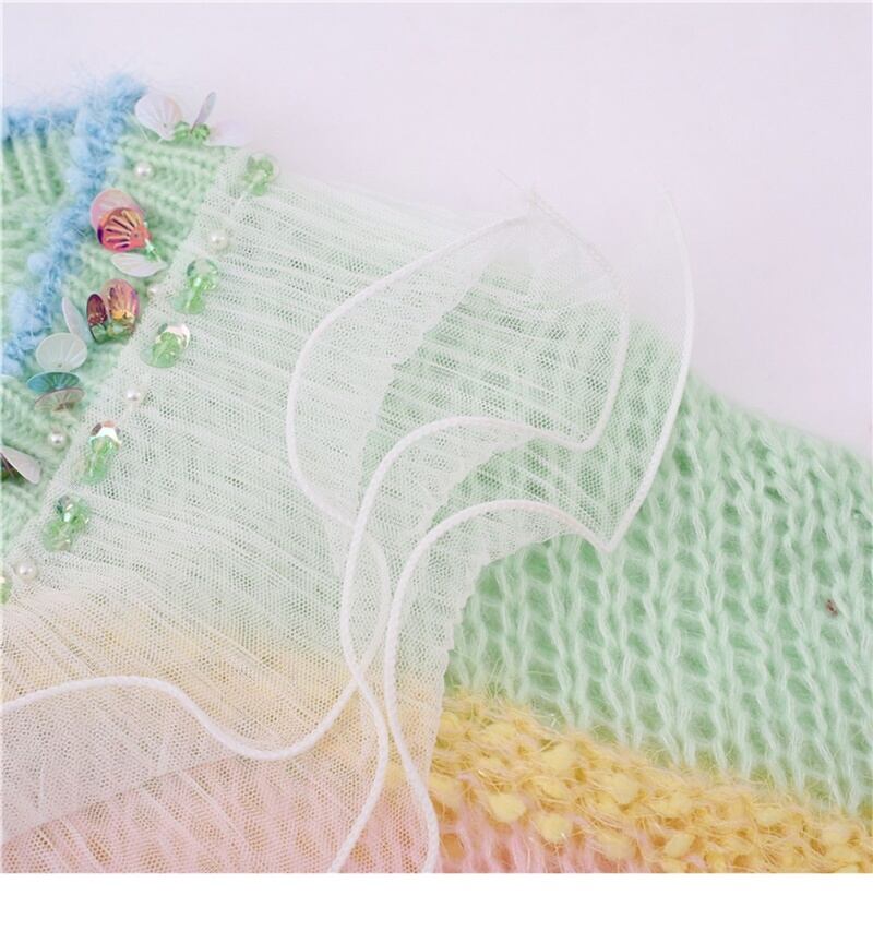 2カラー フリル ビーズ Vネック 長袖 ニット *bl336