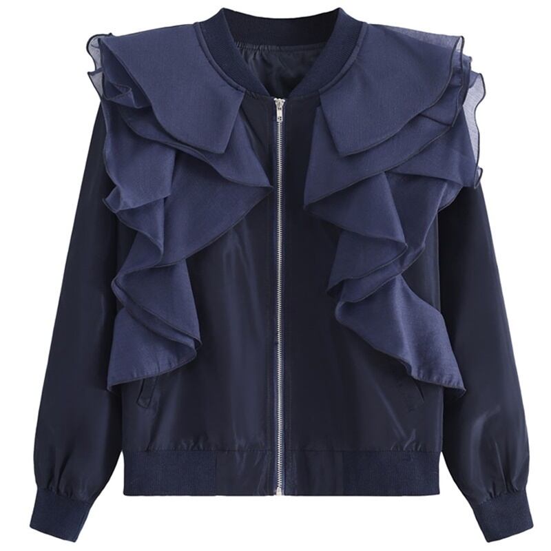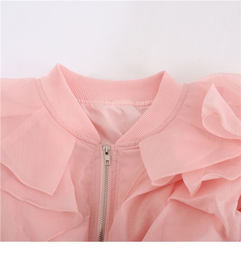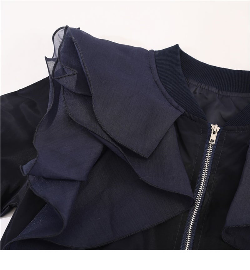 2カラー ジッパー フリル 長袖 ジャケット *ja046