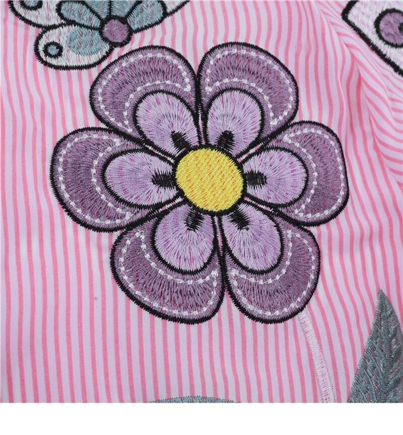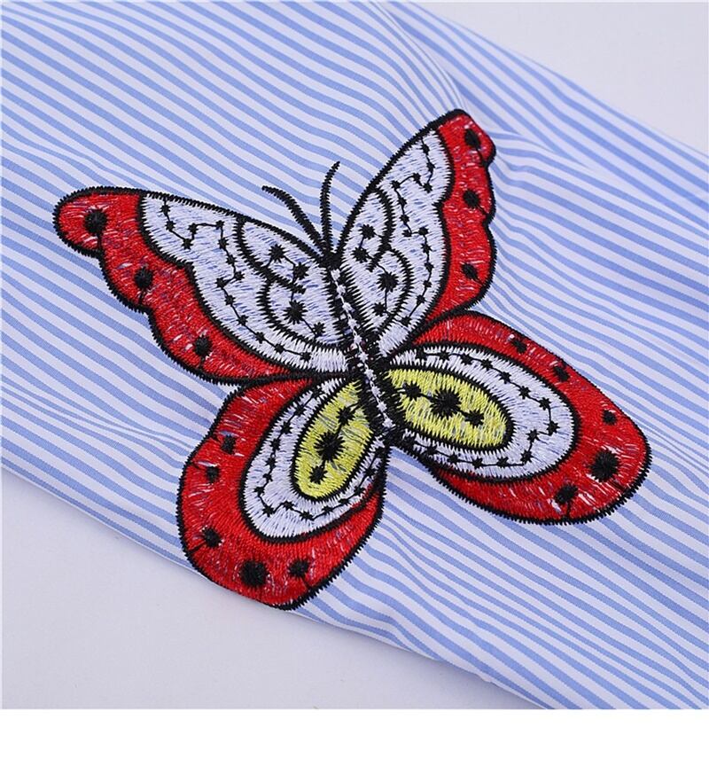 2カラー ストライプ 刺繍 フリル 長袖 シャツ ブラウス *bl337