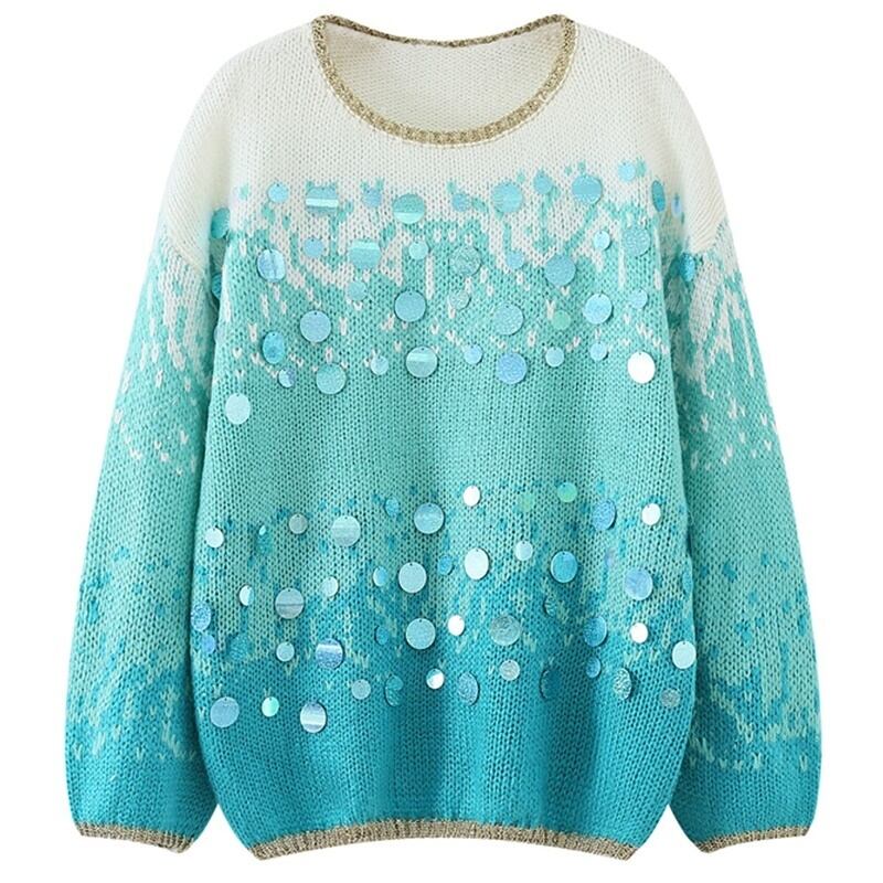 スパンコール グラデーション ラウンドネック 長袖 ニット *bl338