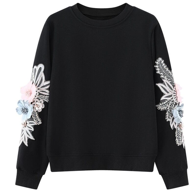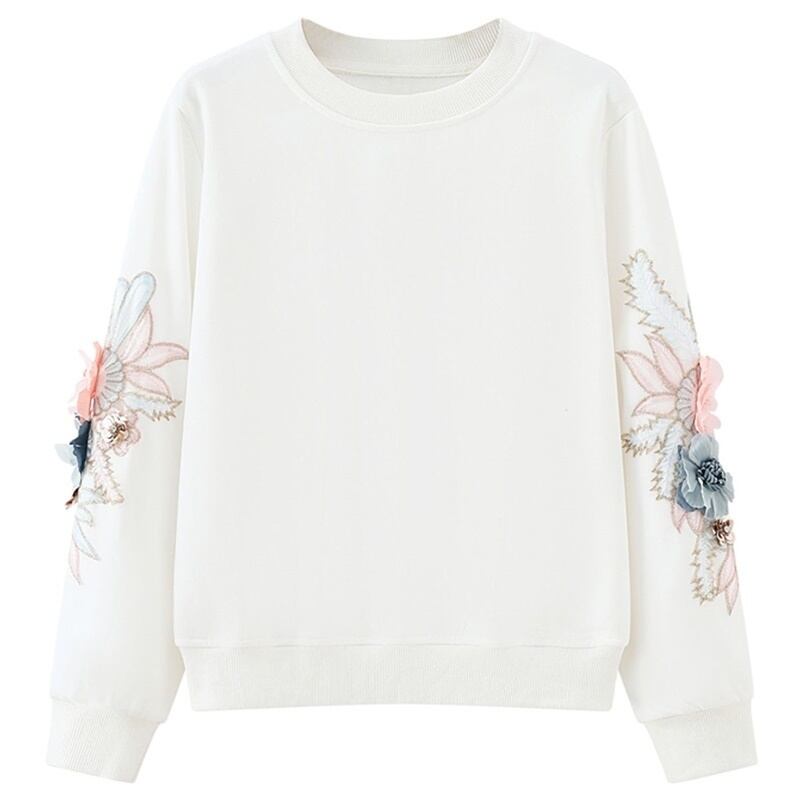 立体フラワー 刺繡 ラウンドネック 長袖 プルオーバー シャツ *bl339