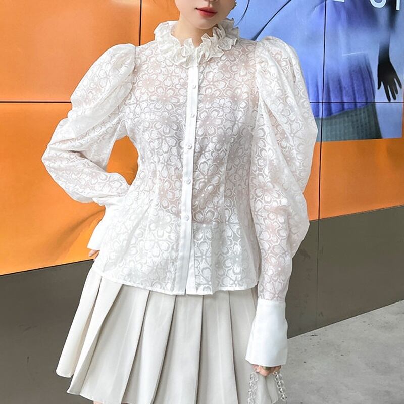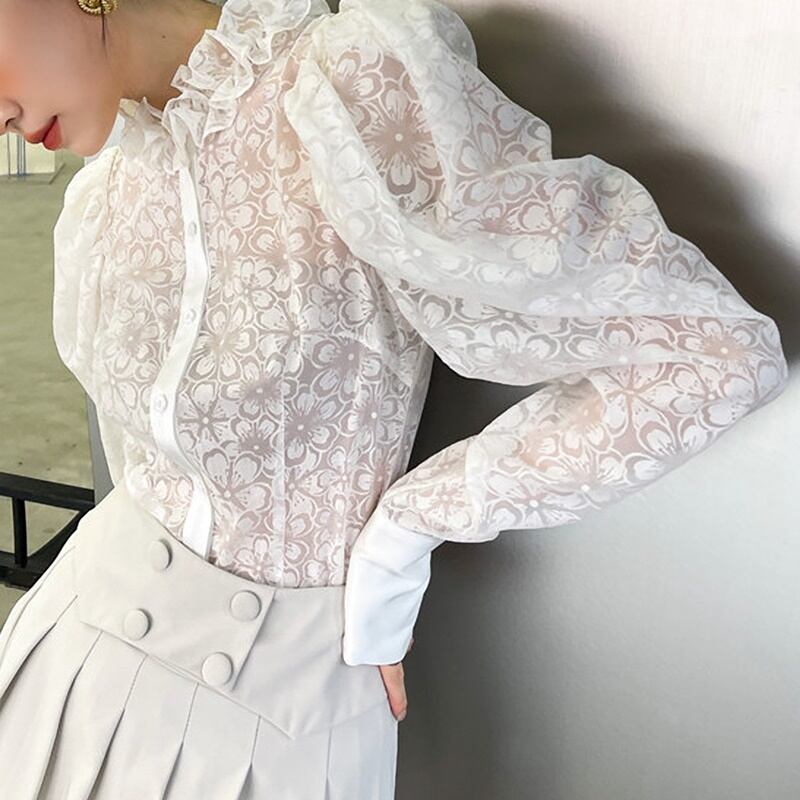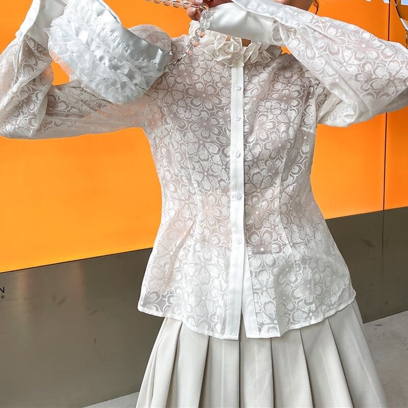 シアー 花柄 フリル襟 長袖 シャツ ブラウス *bl342