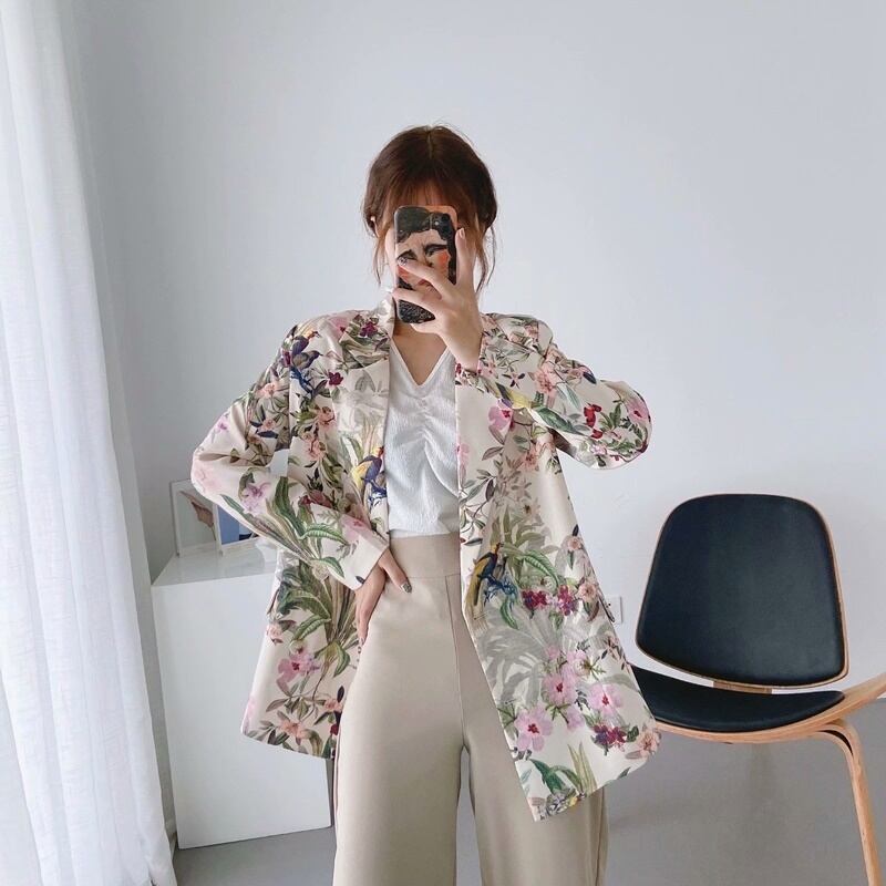 レトロ 花柄 襟付き 長袖 ジャケット *ja048