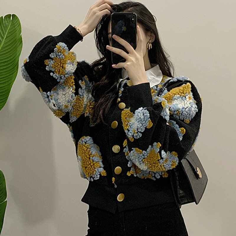 もこもことした刺繍が特徴的なブラウス。