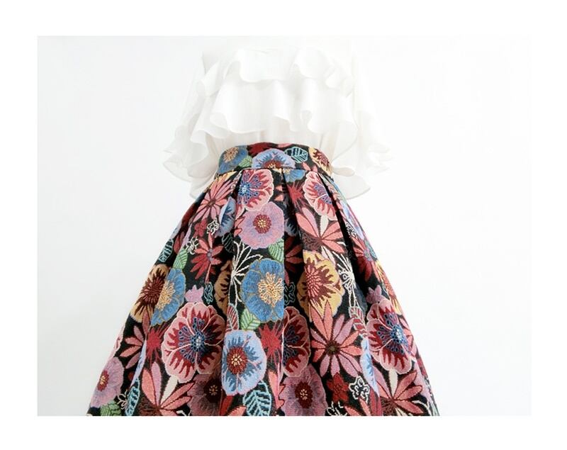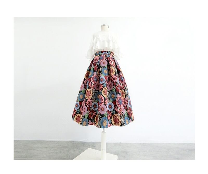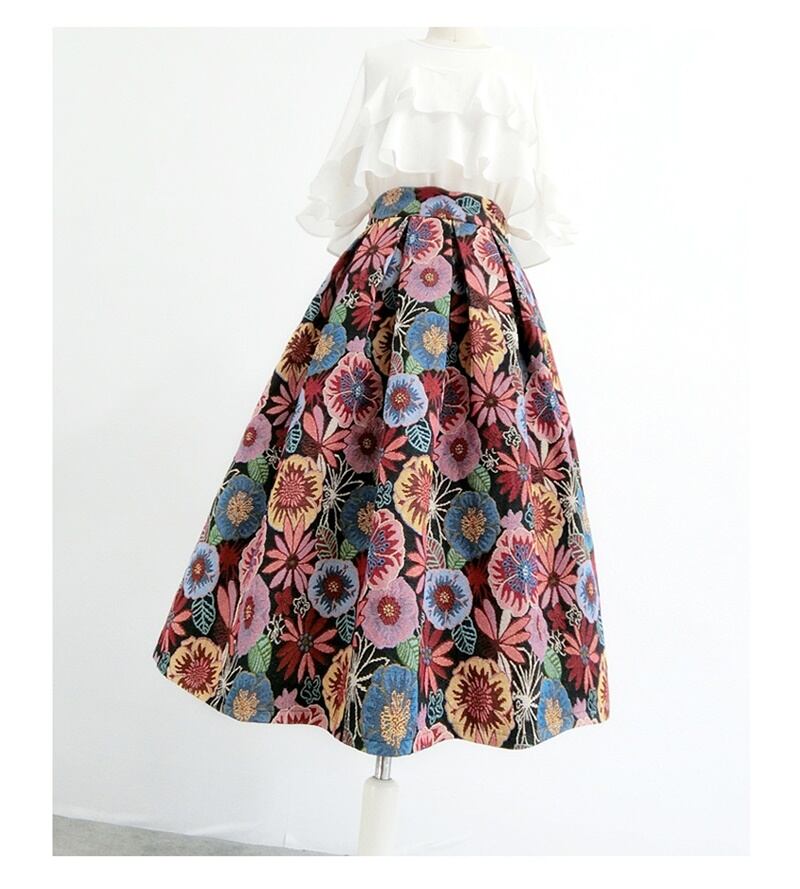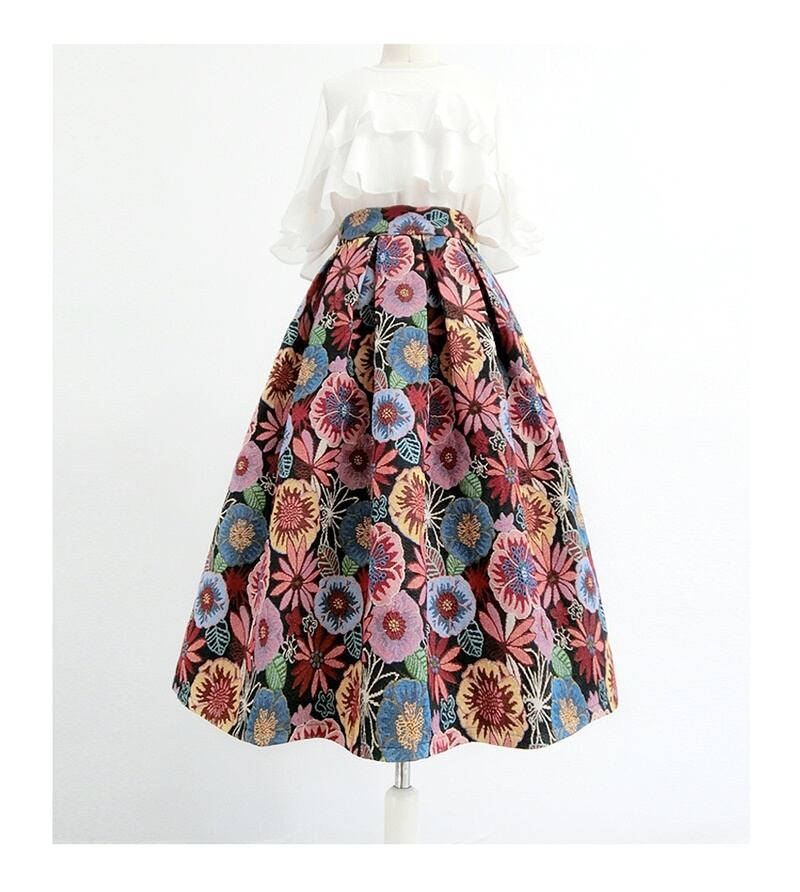 シック 花柄 刺繍 ハイウエスト Aライン スカート *sk156