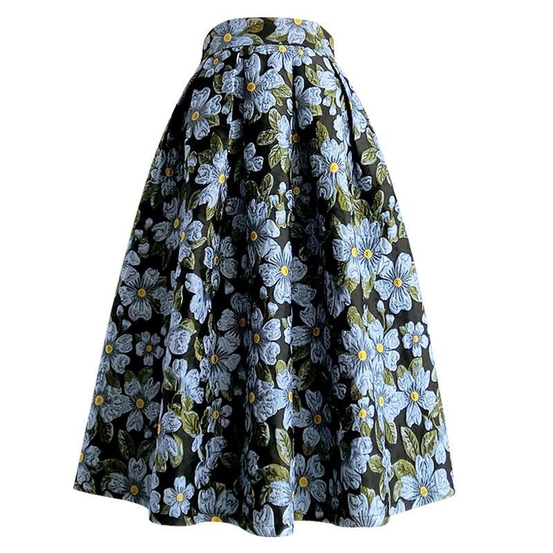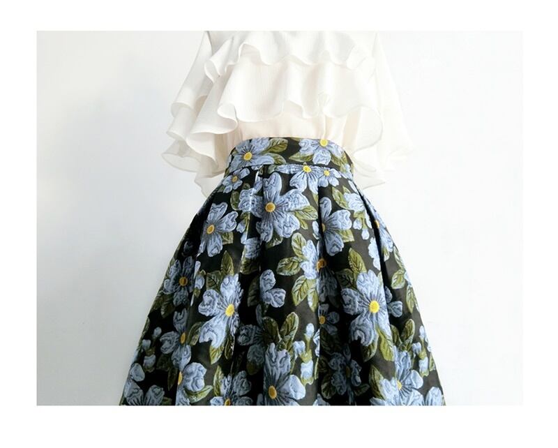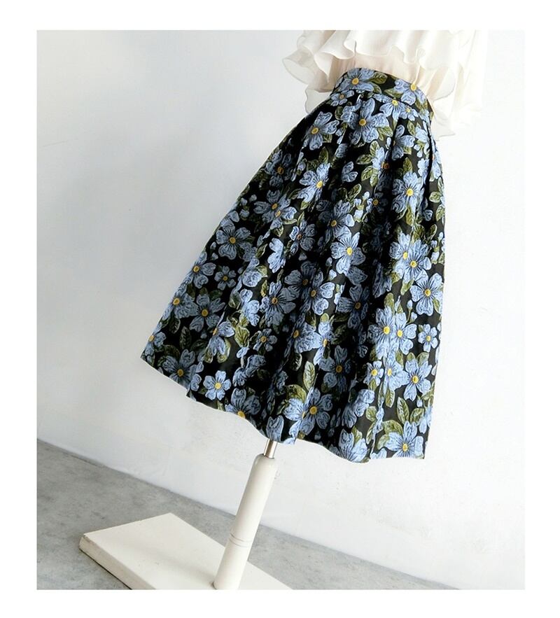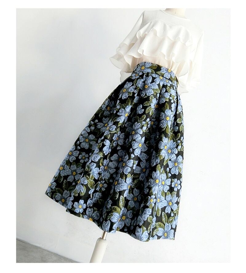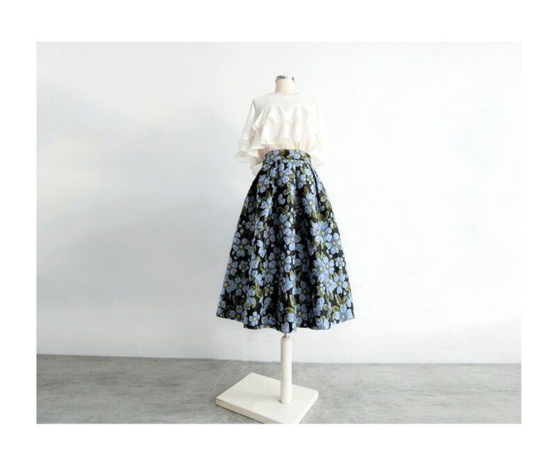 花柄 刺繍 ハイウエスト Aライン スカート *sk159
