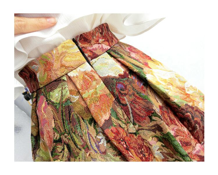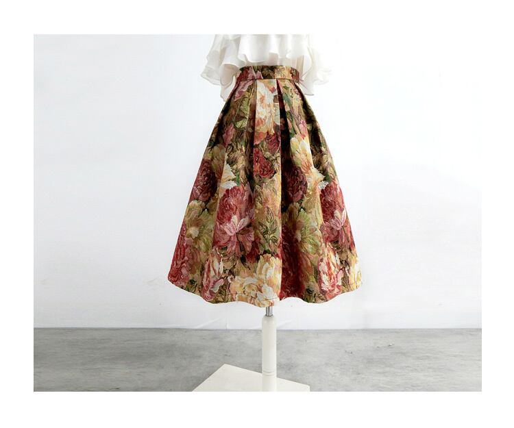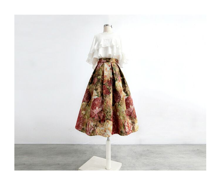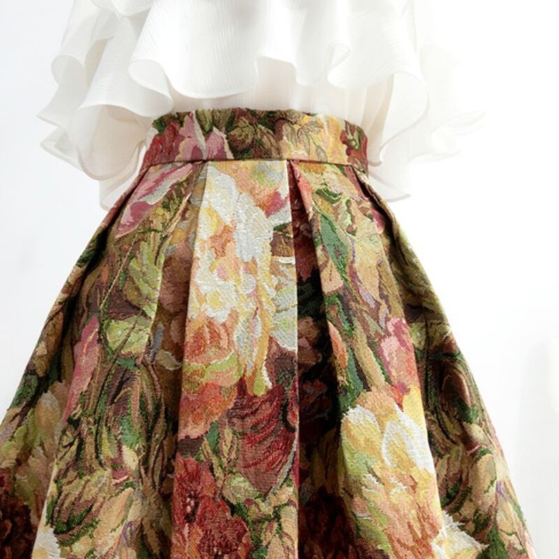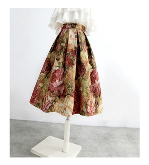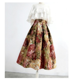 レトロ 花柄 刺繍 ハイウエスト Aライン スカート *sk161