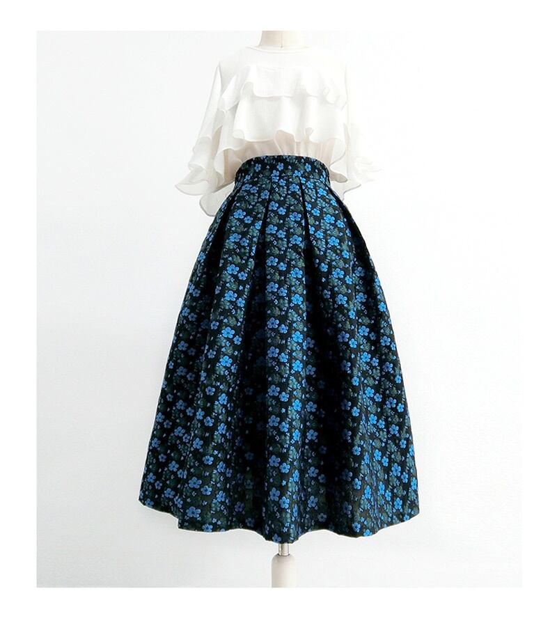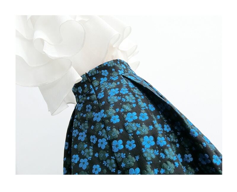 大人可愛い 花柄 刺繍 ハイウエスト Aライン スカート *sk163