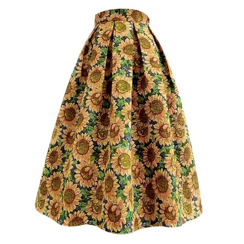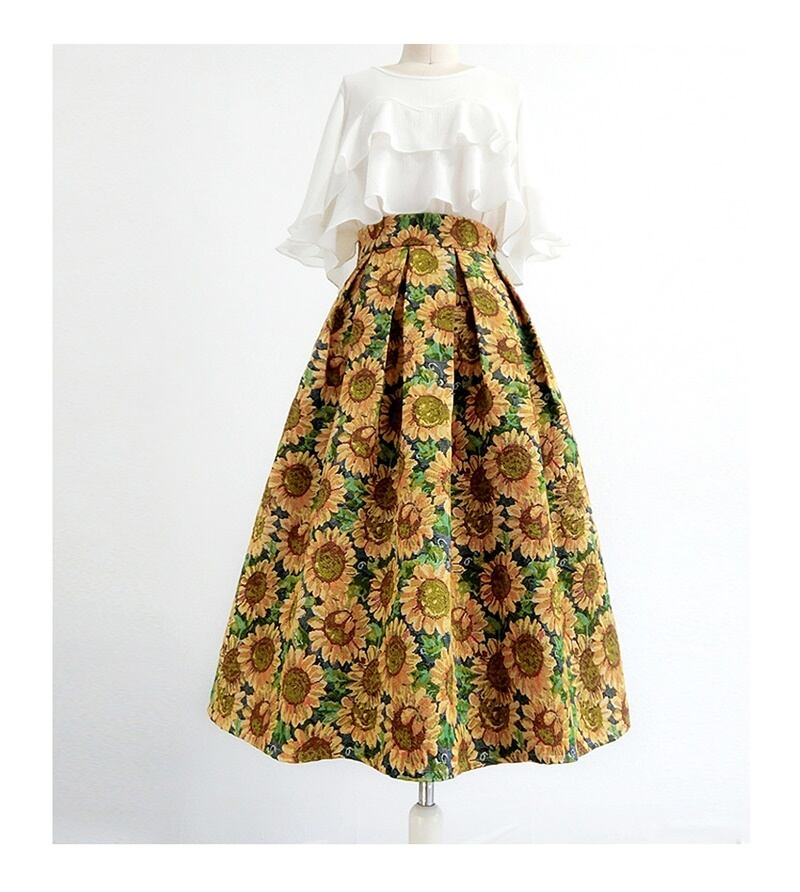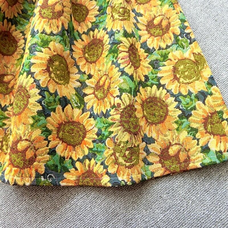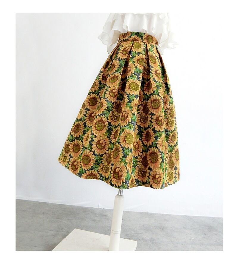 ひまわり柄のAラインスカートです。