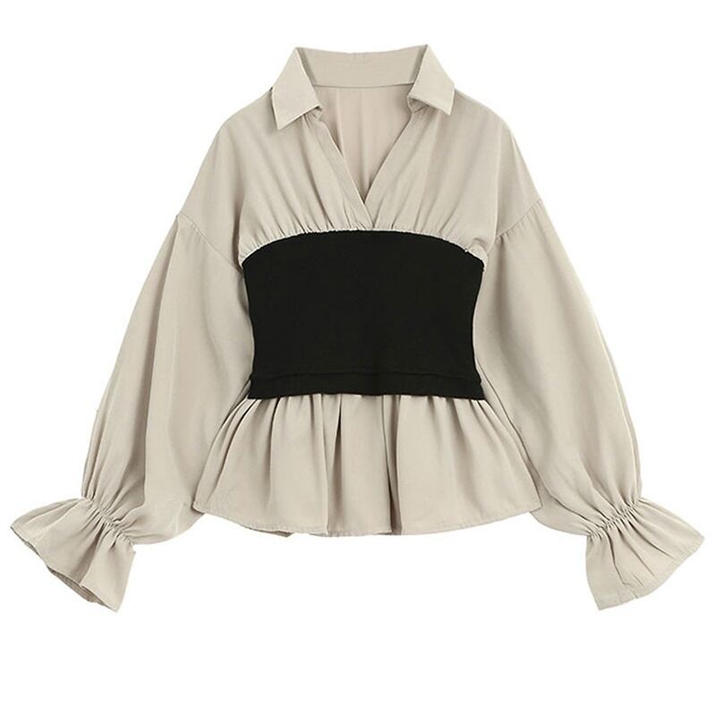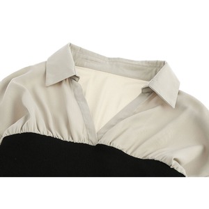 バイカラー Vネック 長袖 シャツ ブラウス *bl349
