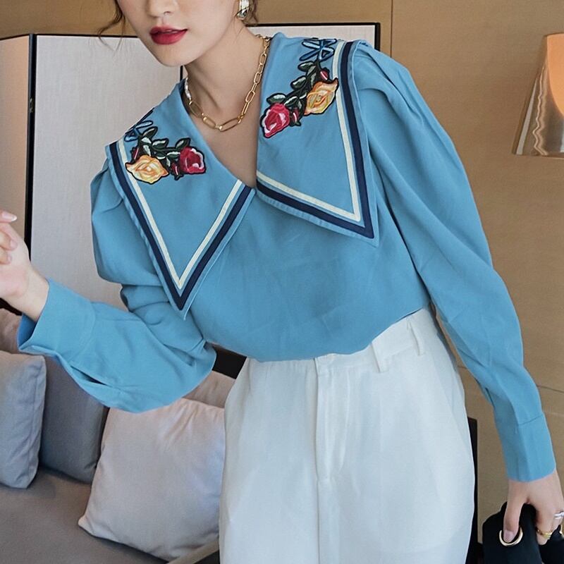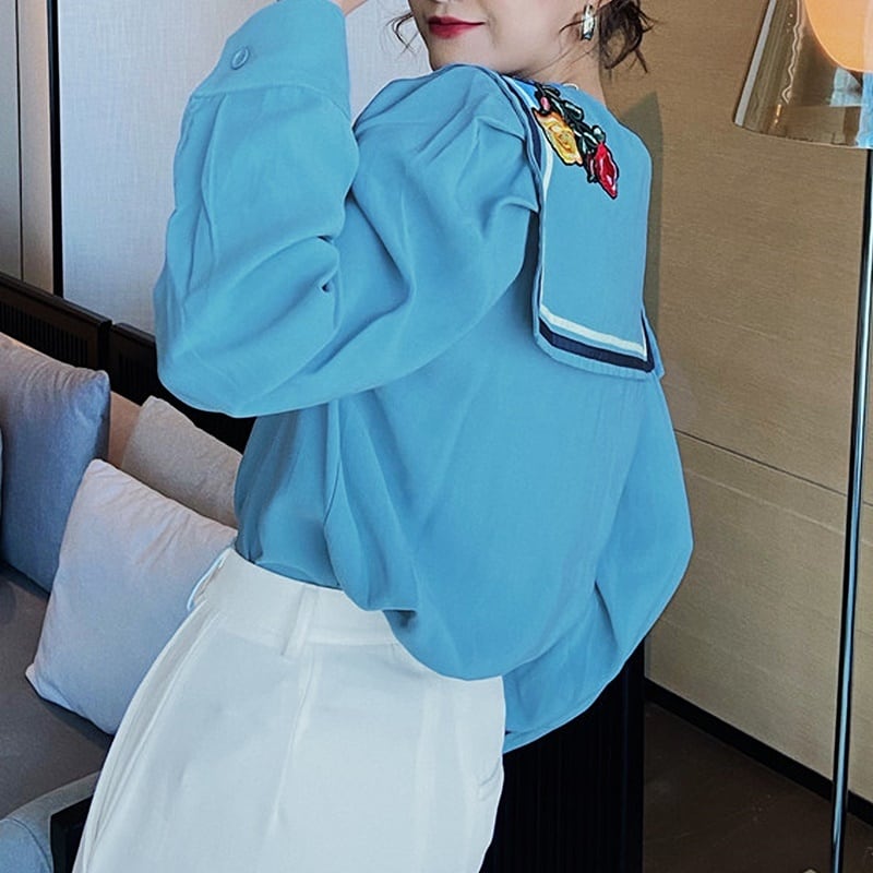花柄 ボーダー Vネック 長袖 シャツ ブラウス *bl351