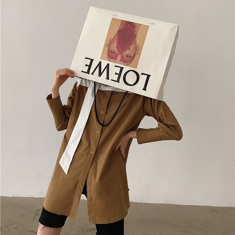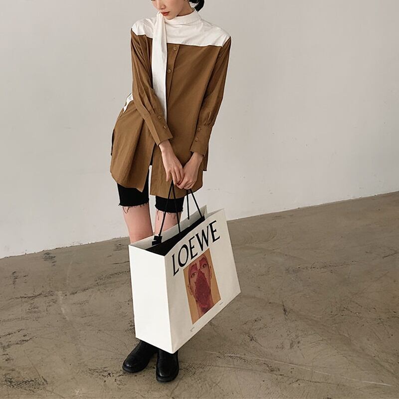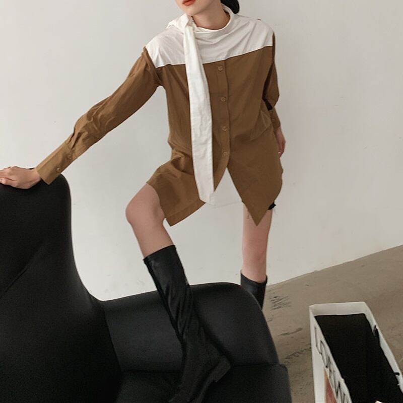 バイカラー ハイネック 長袖 シャツ ブラウス *bl352