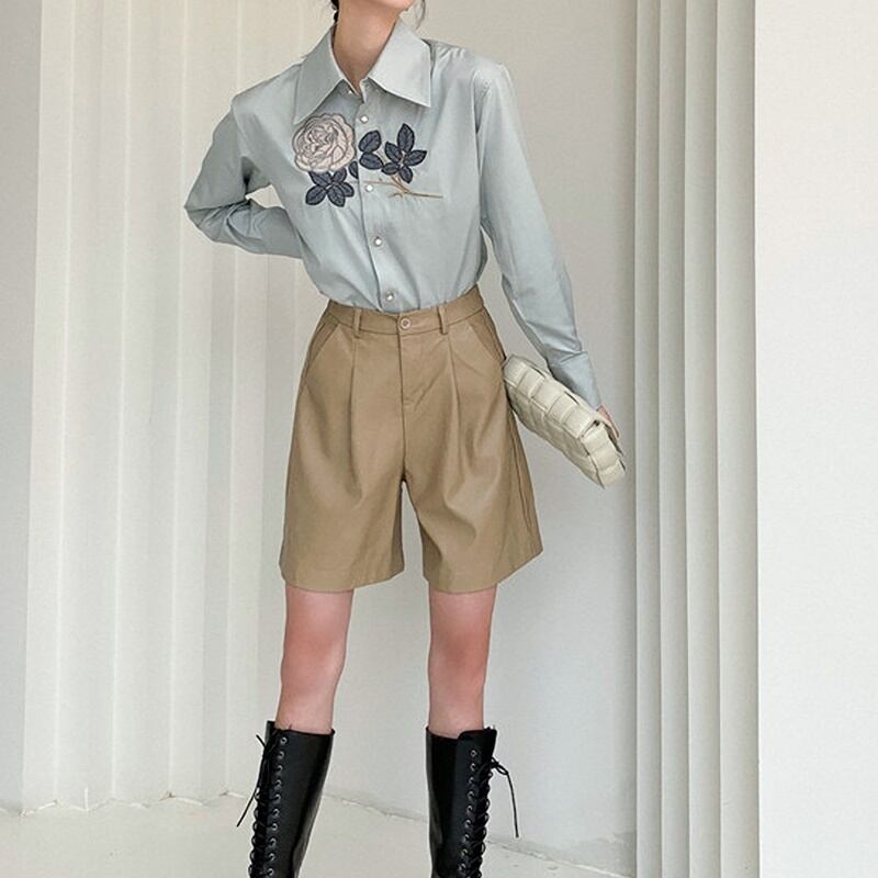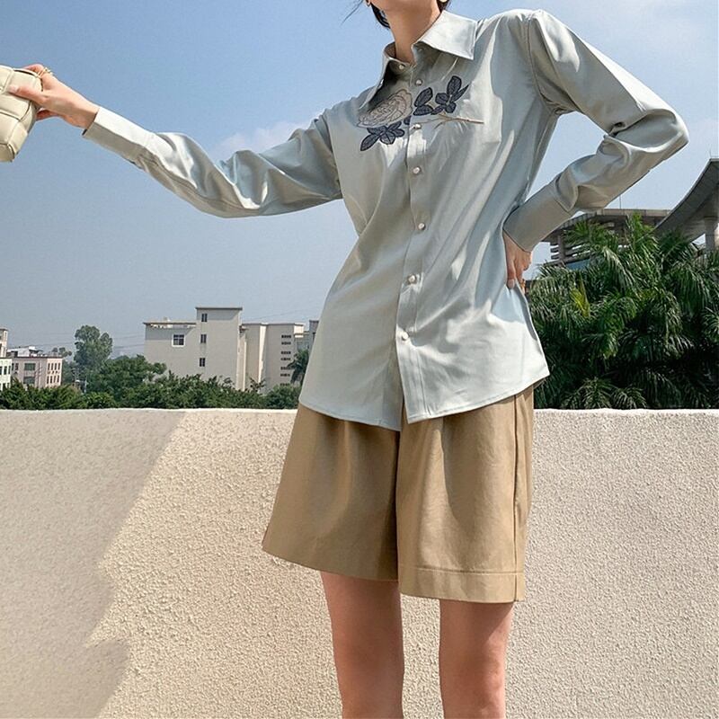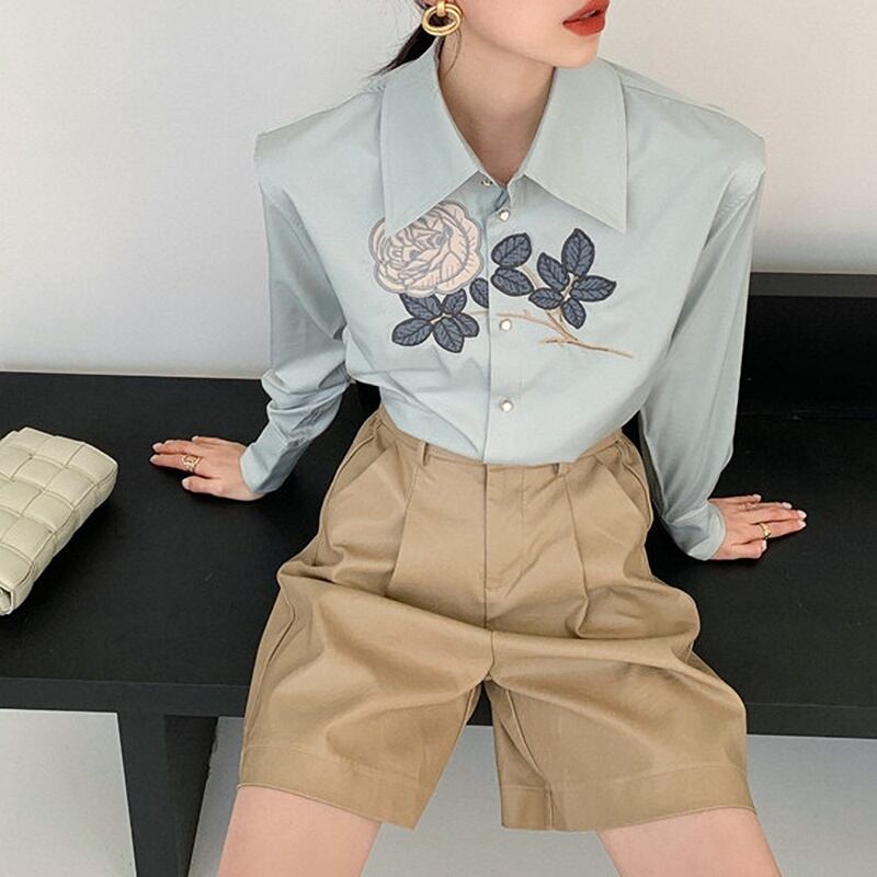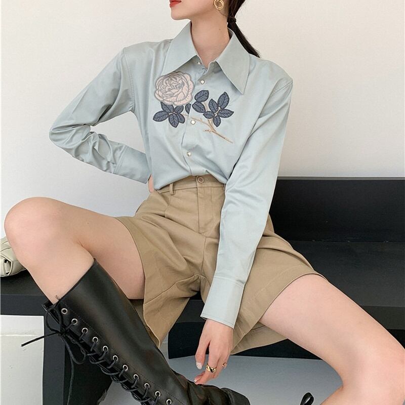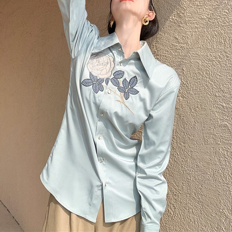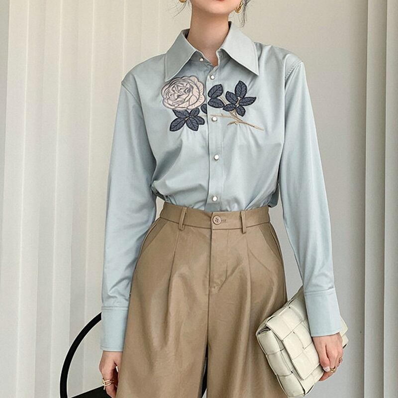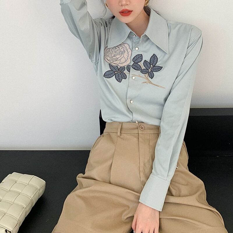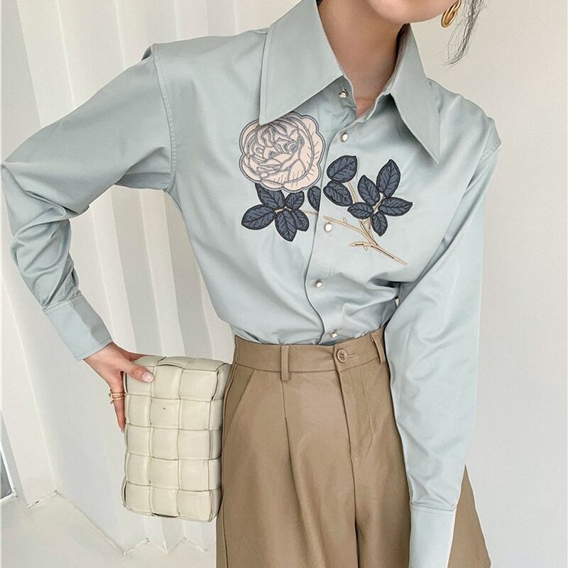 レトロ 花柄 刺繡 長袖 シャツ ブラウス *bl355