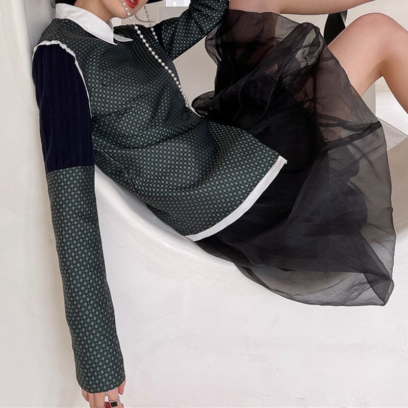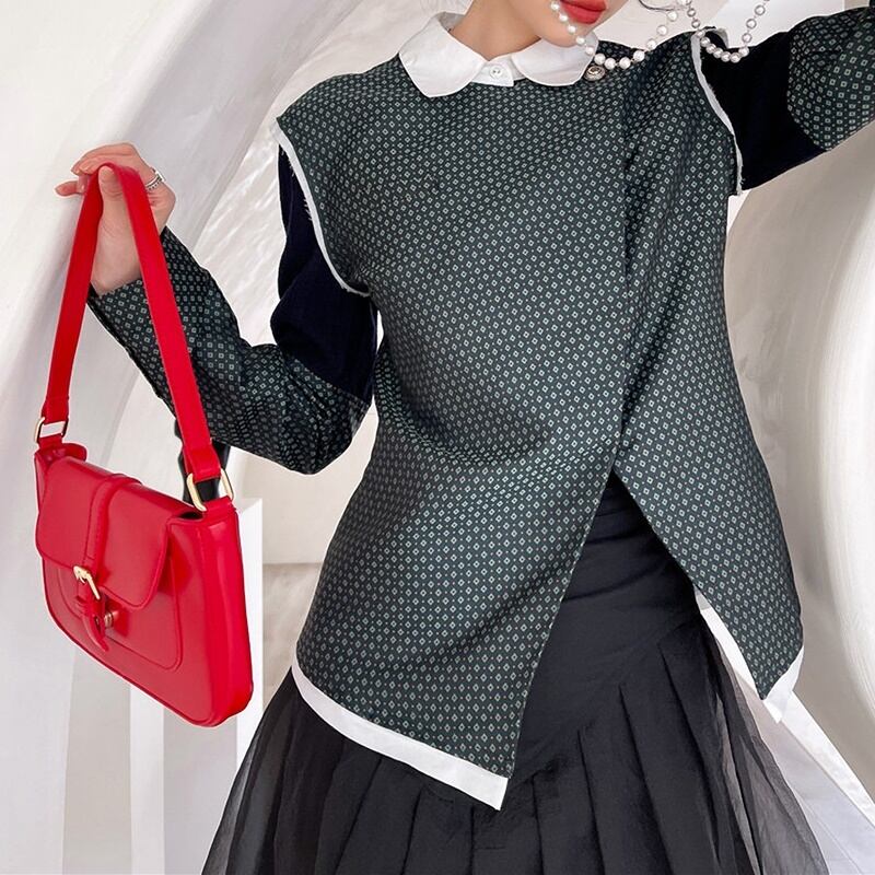 アシンメトリー ドット柄 長袖 シャツ ブラウス *bl356