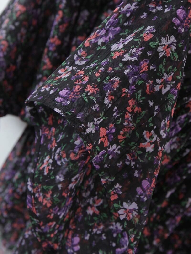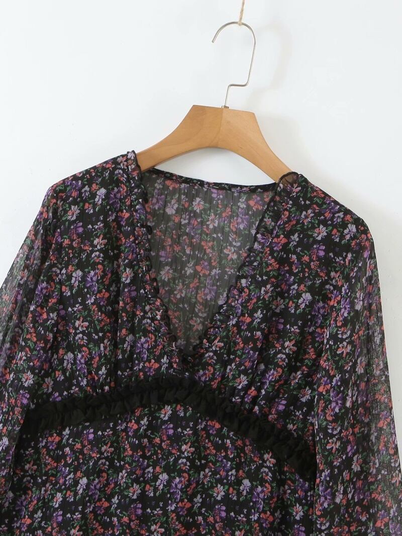花柄 Vネック シフォン 長袖 シャツ ブラウス *bl357
