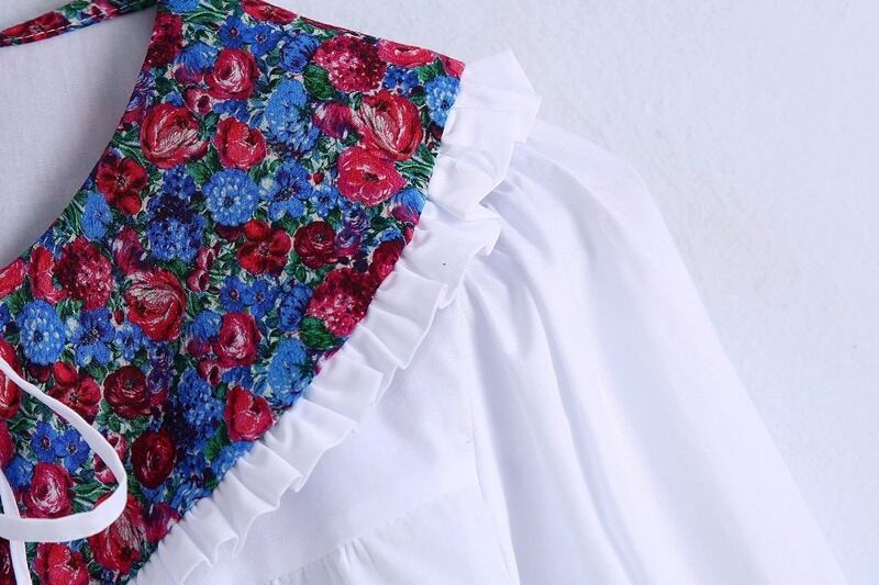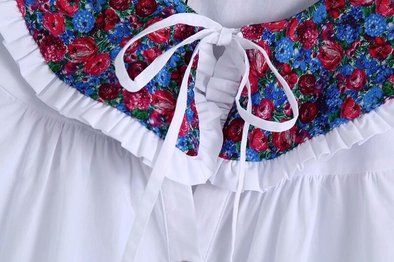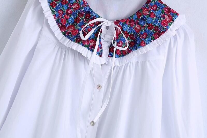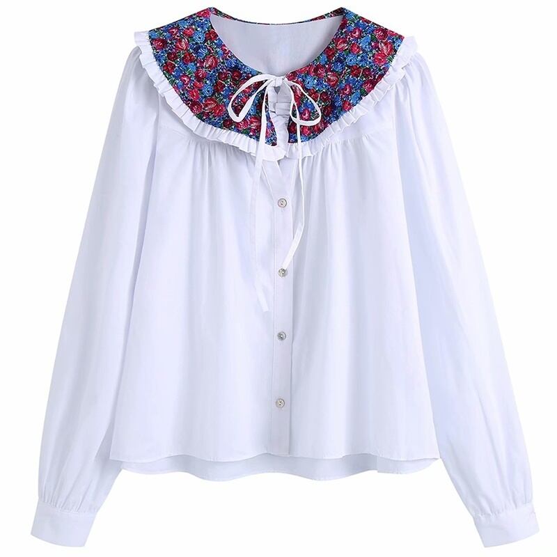 花柄 ラウンドネック フリル 長袖 シャツ ブラウス *bl359