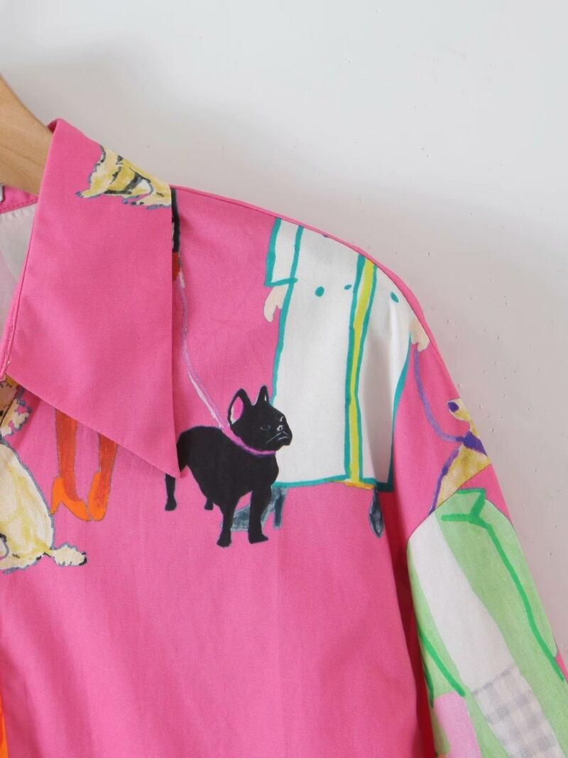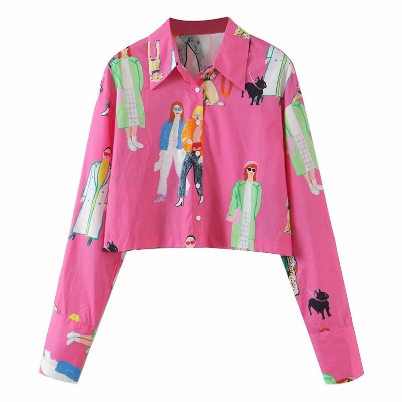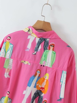 イラスト柄 レトロ 長袖 シャツ ブラウス *bl361