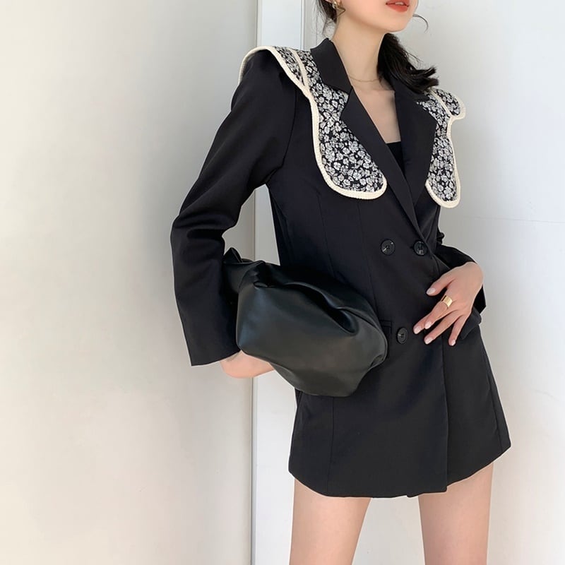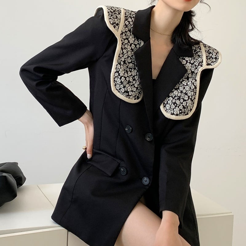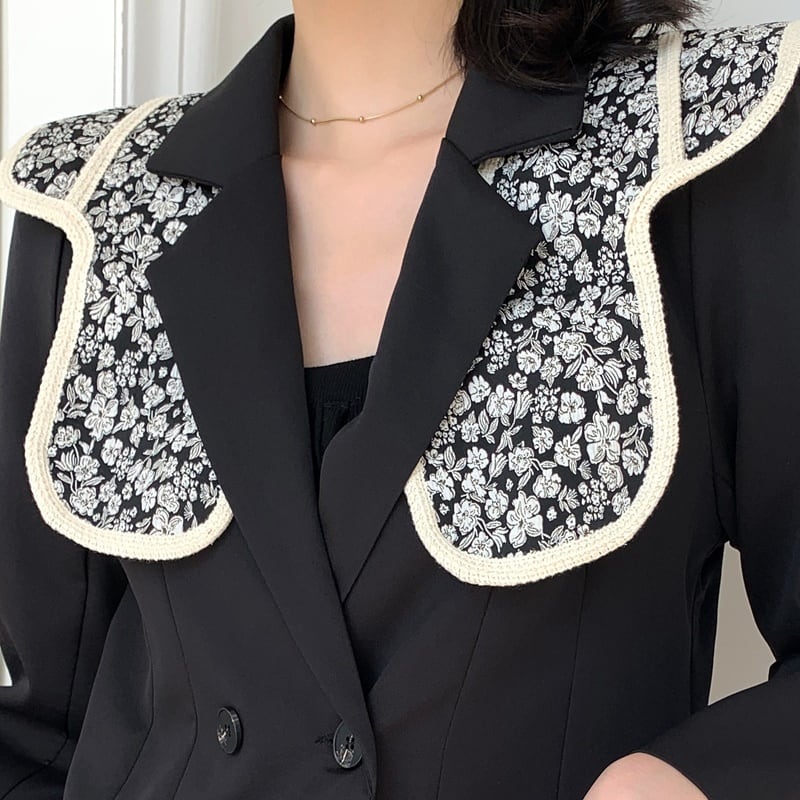 花柄の襟がアクセントになっています。