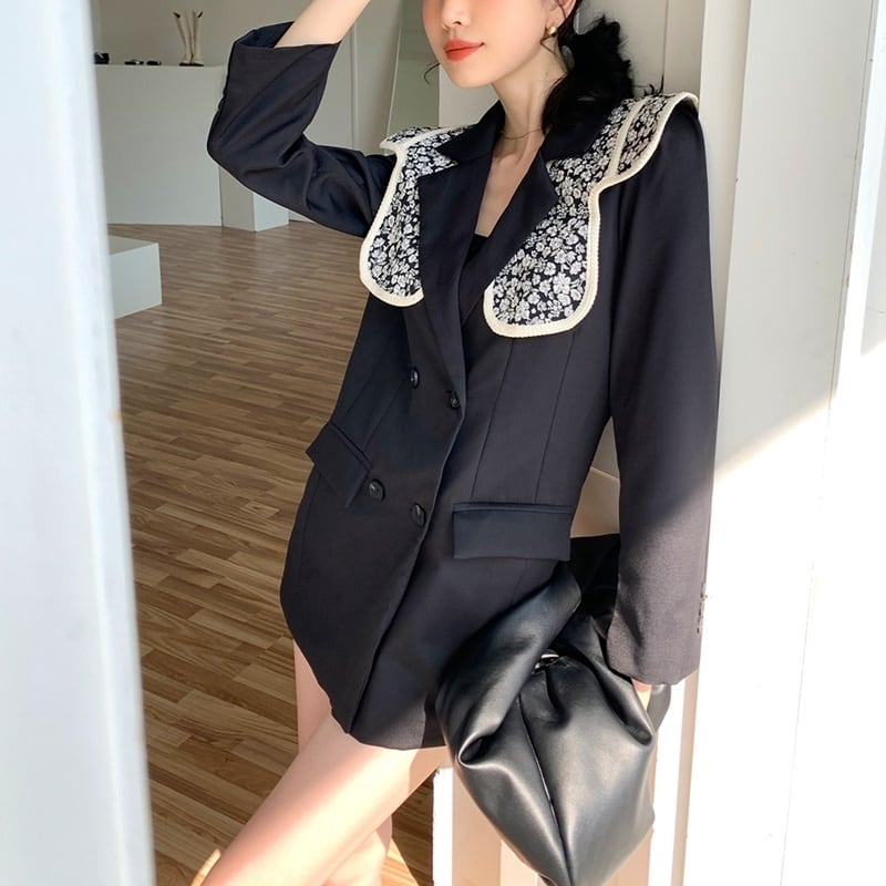スーツ レース 花柄 刺繍 長袖 ジャケット *set073