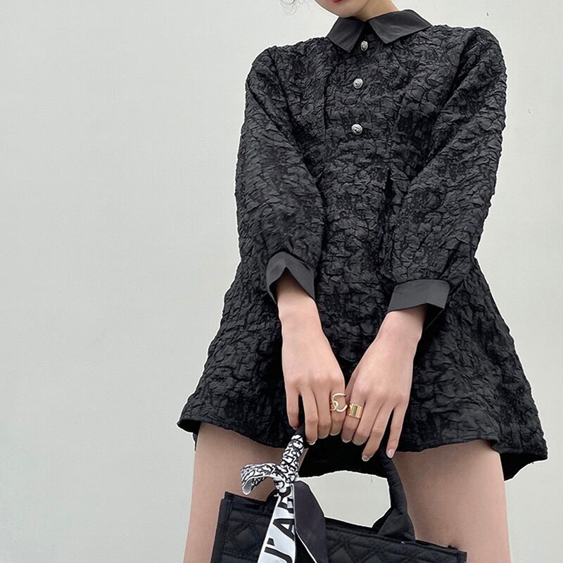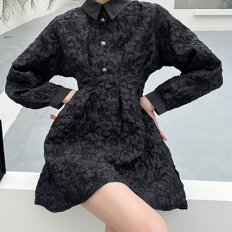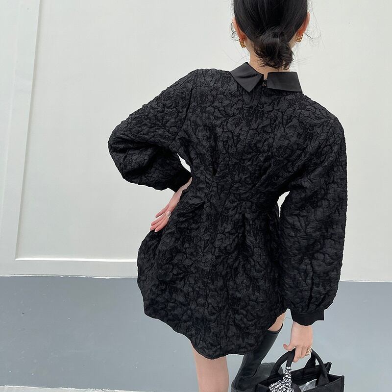 エンボス 刺繍 ドレス 長袖 ワンピース *on734