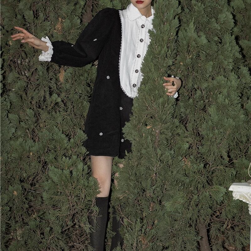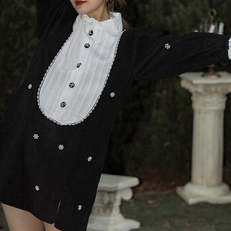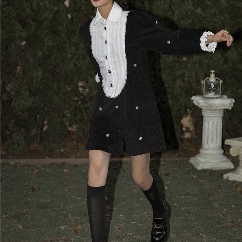 フリル レース 花柄 ドレス 長袖 ワンピース *on735