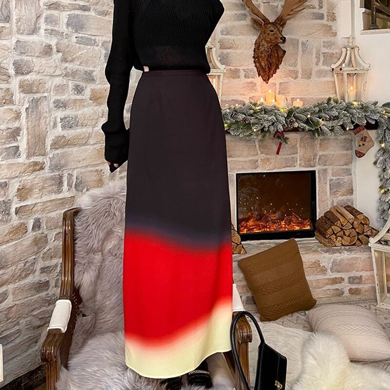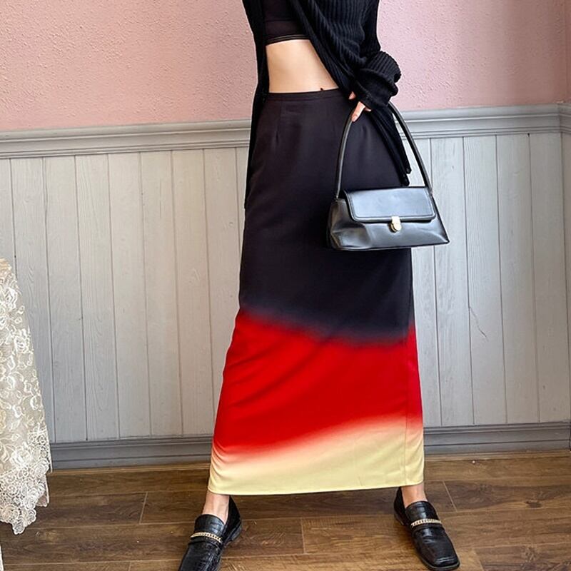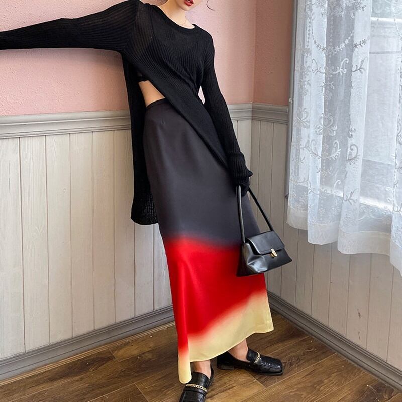 グラデーションカラー ハイウエスト Aライン スカート *sk172