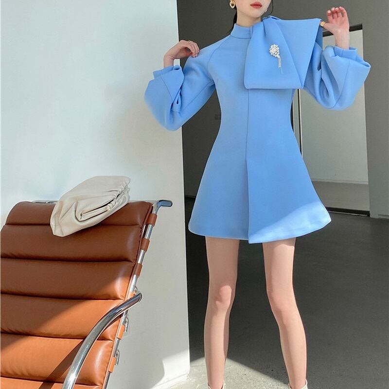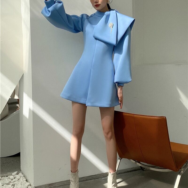 ハイネック ボリューム袖 ミニ丈 長袖 ワンピース *on738