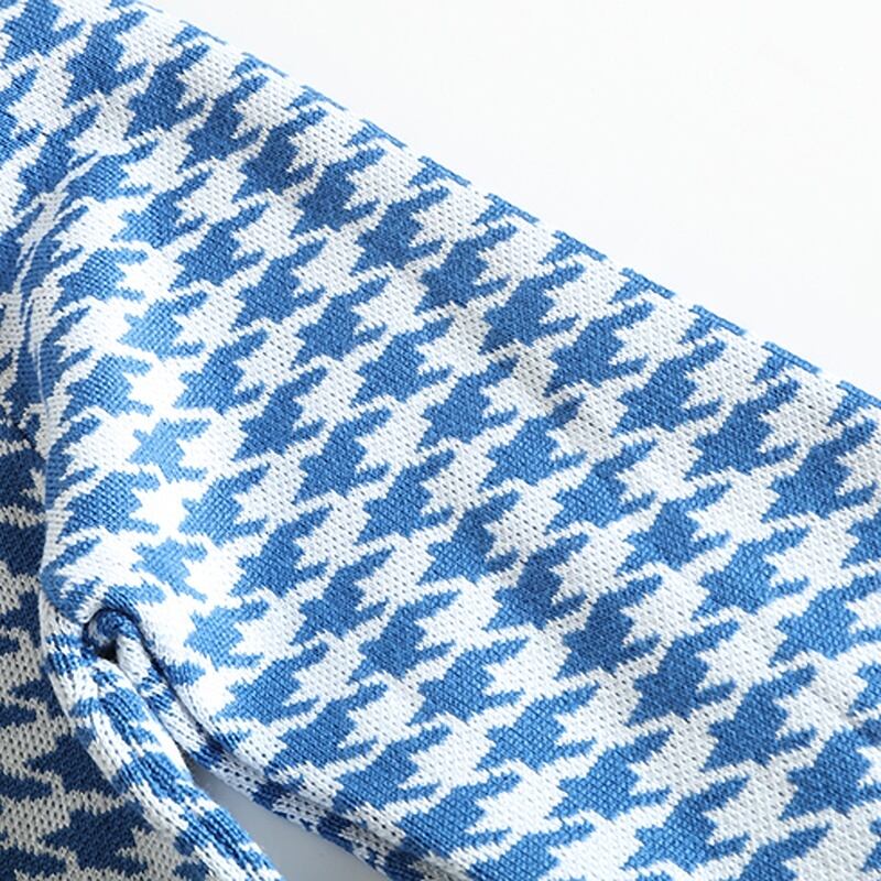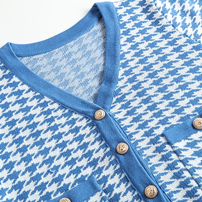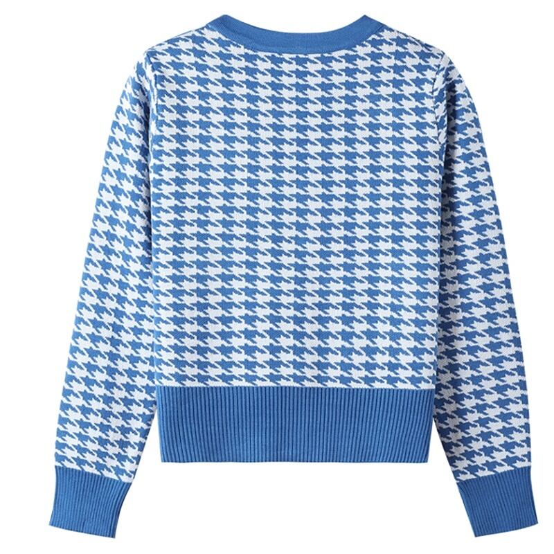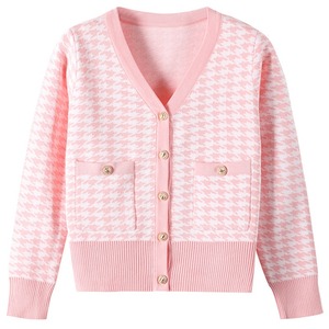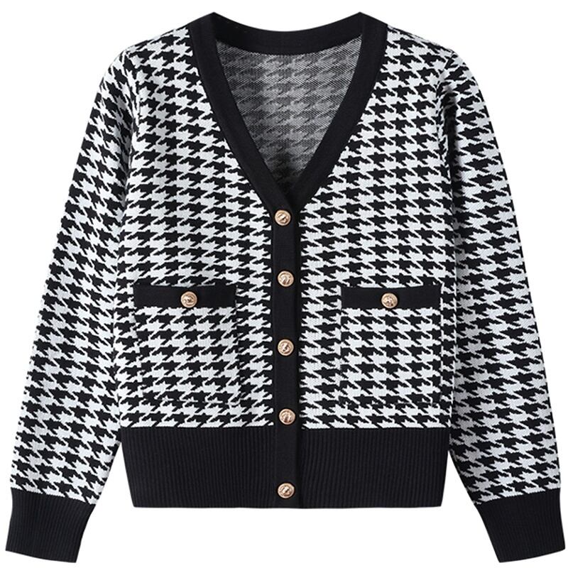 3カラー 千鳥格子柄 Vネック 長袖 ニット カーディガン *ca057