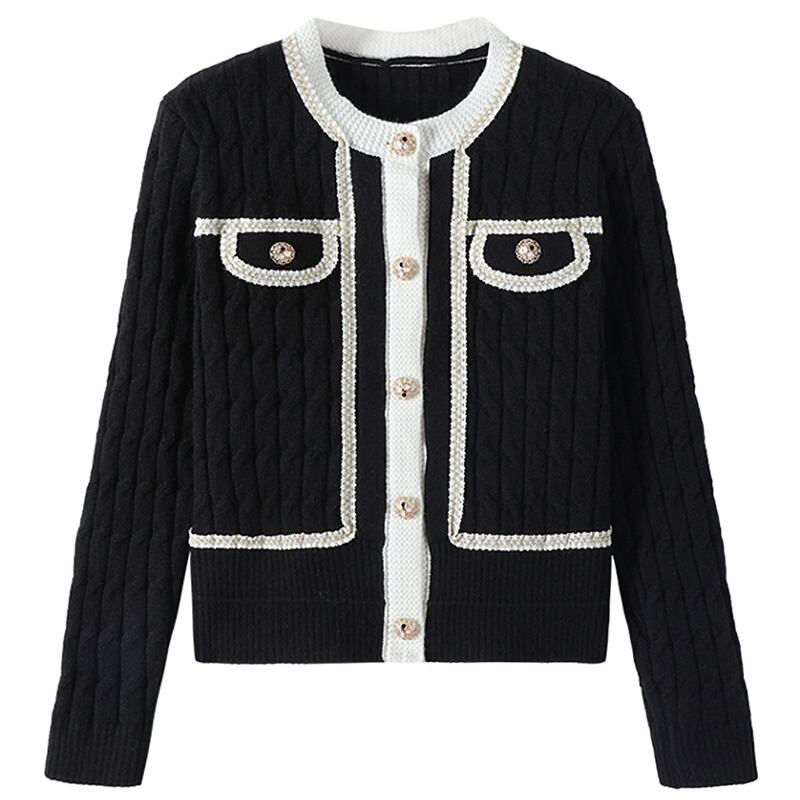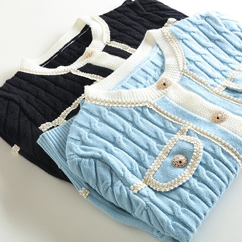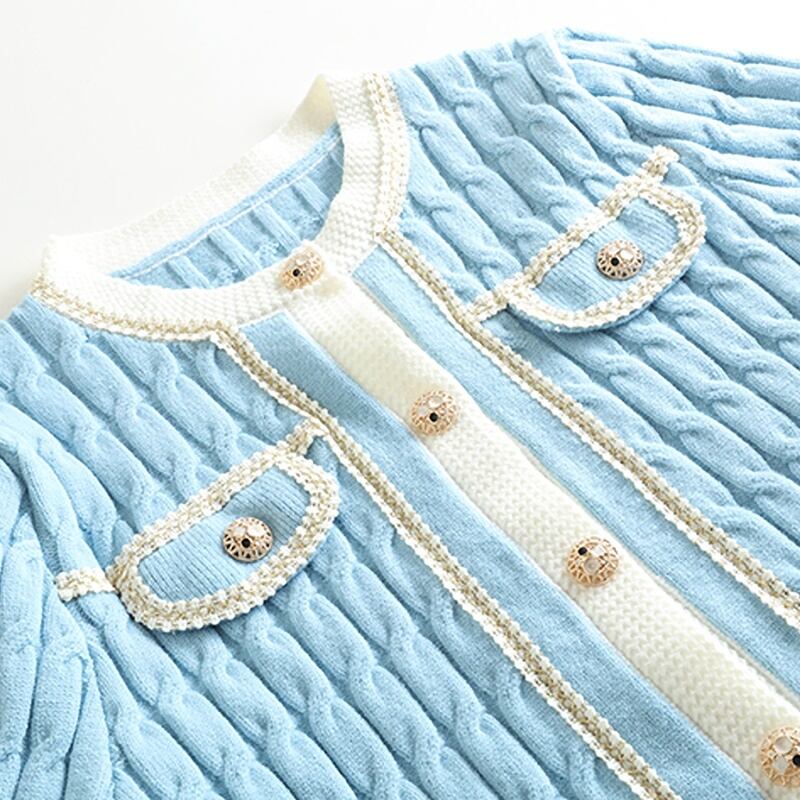 2カラー ツイスト レース ラウンドネック 長袖 カーディガン *ca061