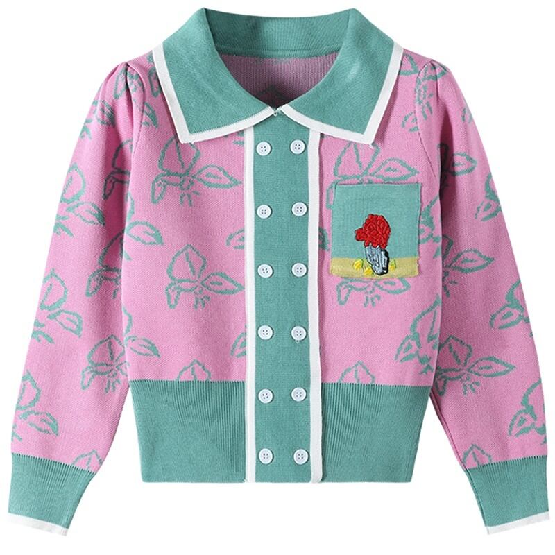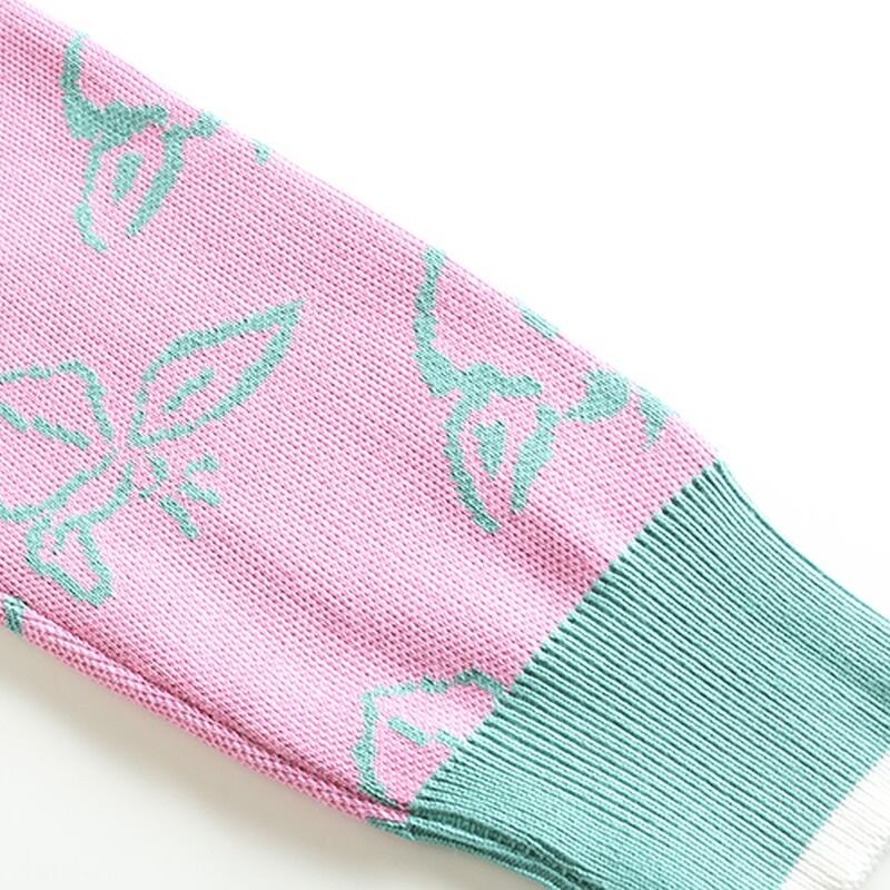 3カラー バタフライ柄 襟つき 長袖 ニット カーディガン *ca063