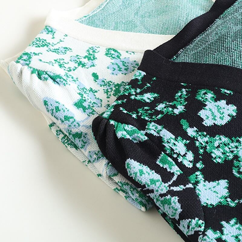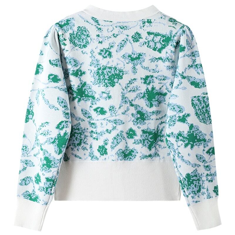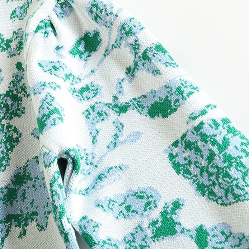 爽やかなグリーンの花柄の長袖ニットカーディガンです。