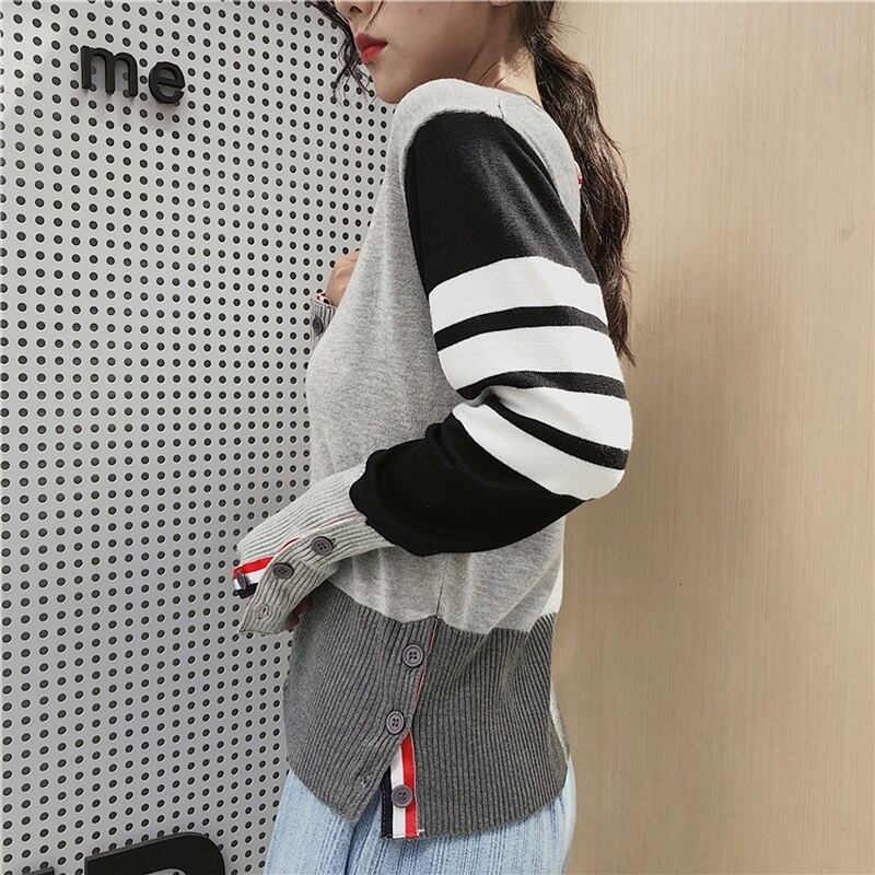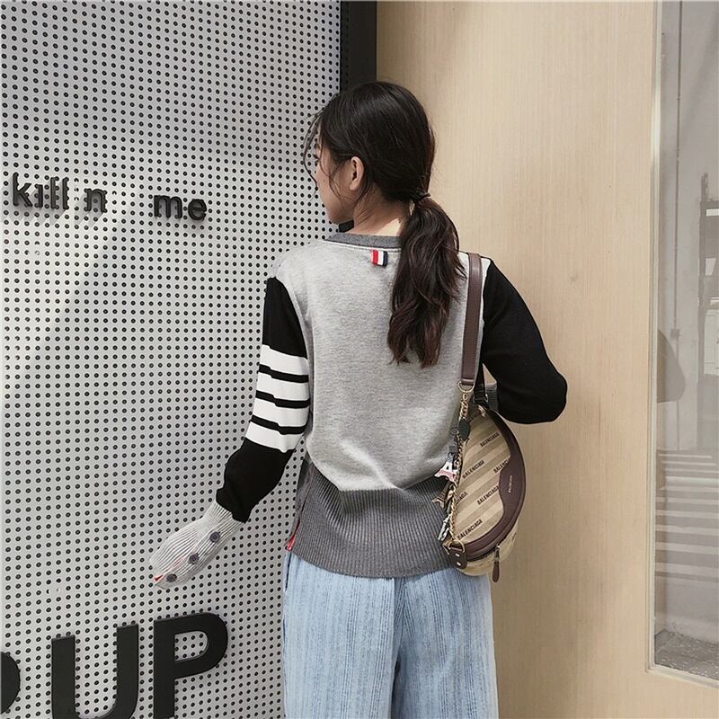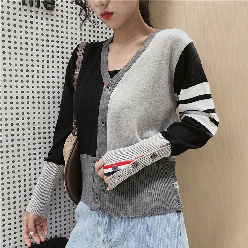 ストライプ Vネック 長袖 ニット カーディガン *ca072