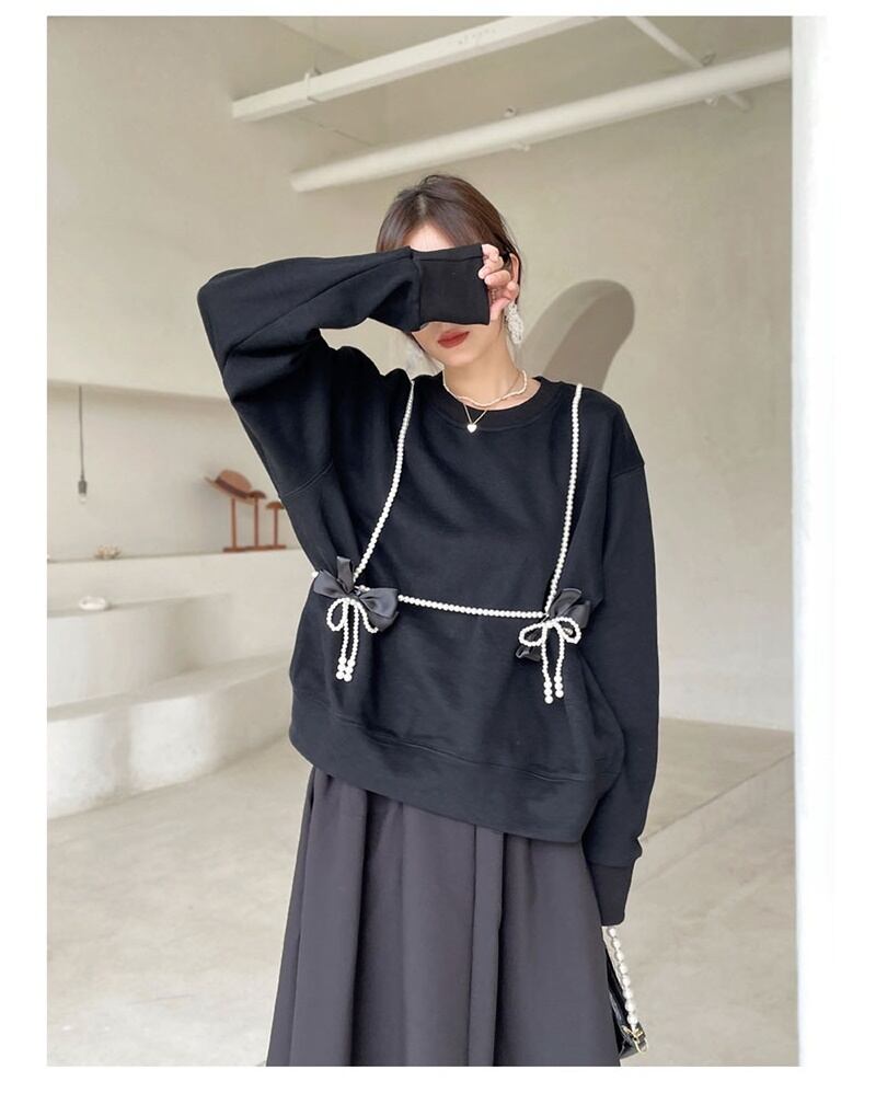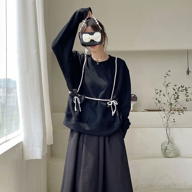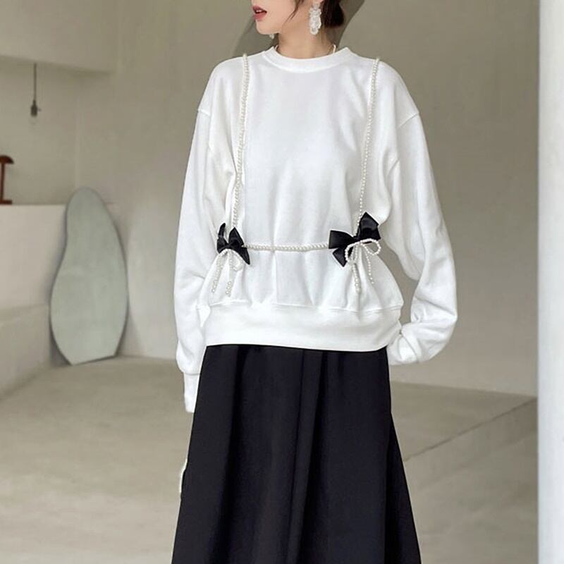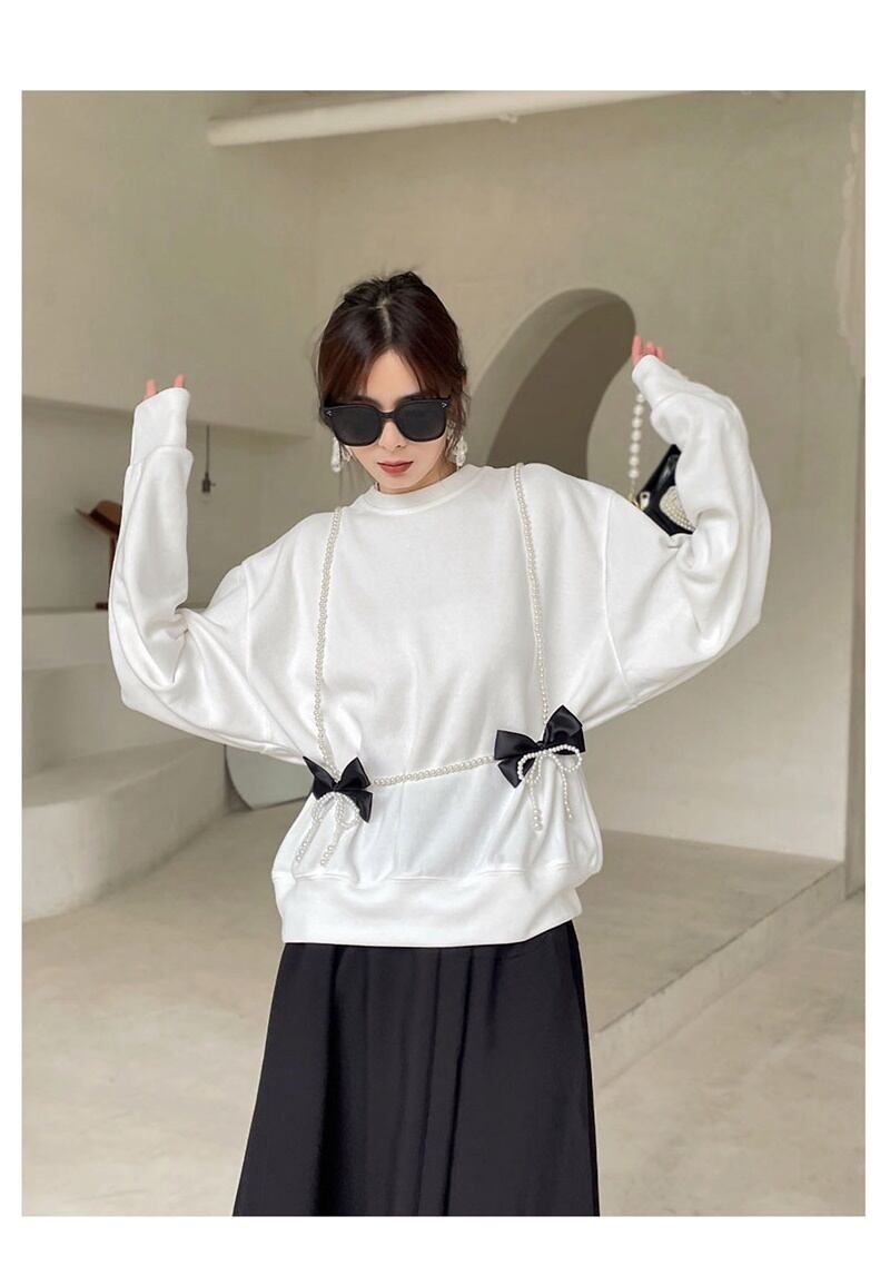 2カラー パール リボン ラウンドネック ニット セーター *ks107
