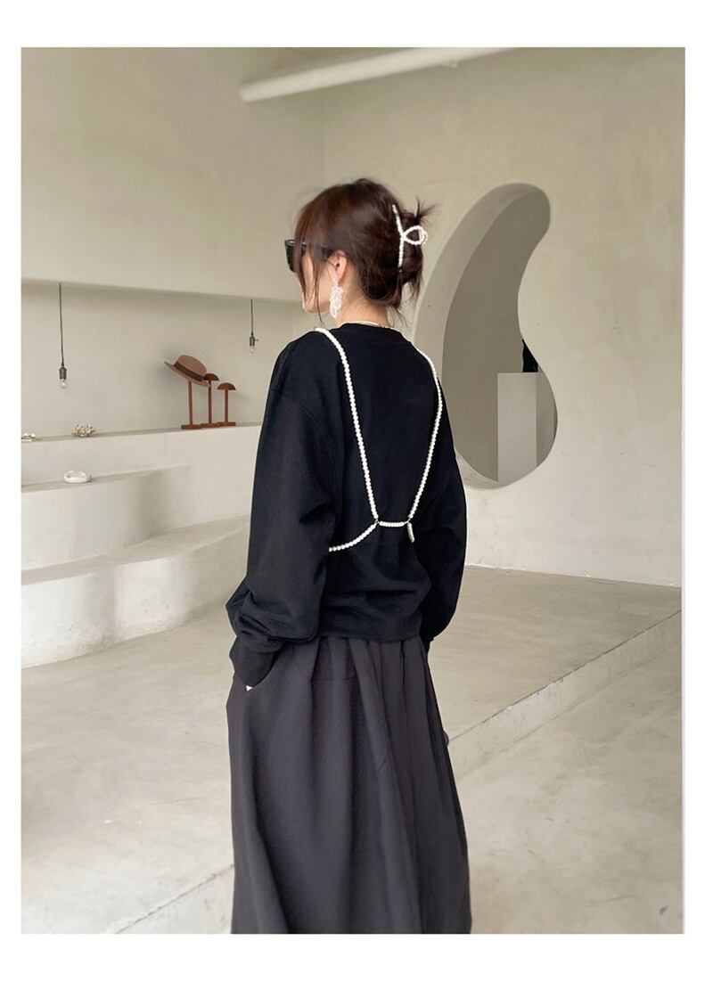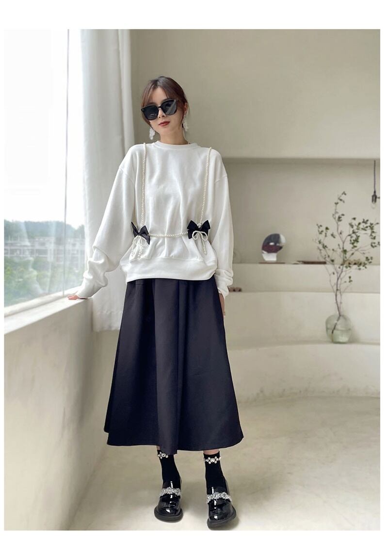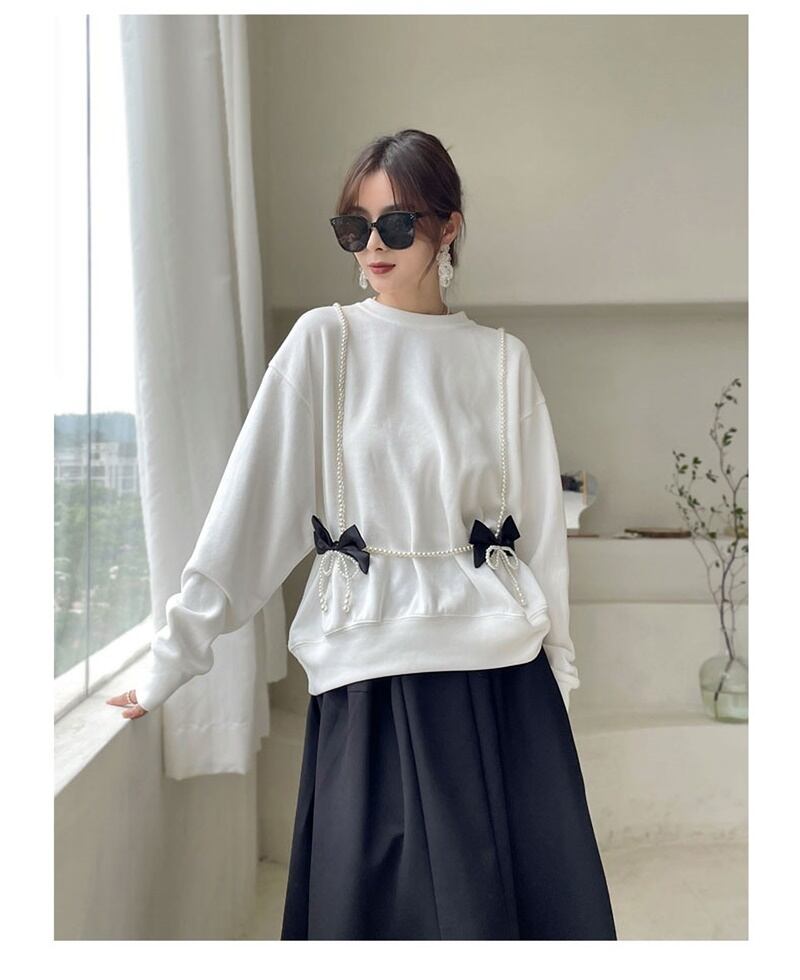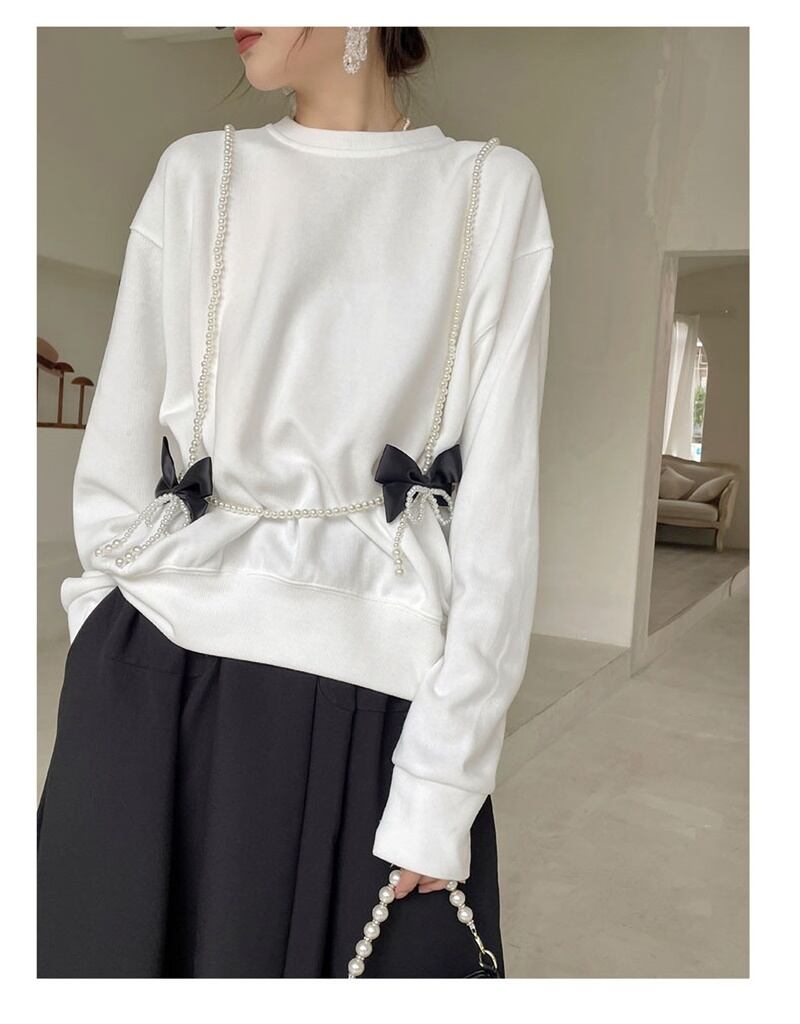 2カラー パール リボン ラウンドネック ニット セーター *ks107