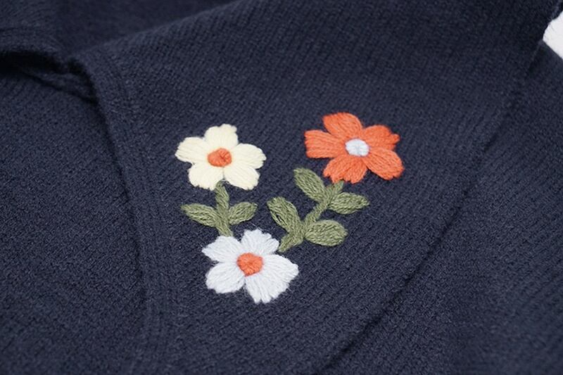 花柄 刺繍 Vネック 長袖 ニット セーター *ks110