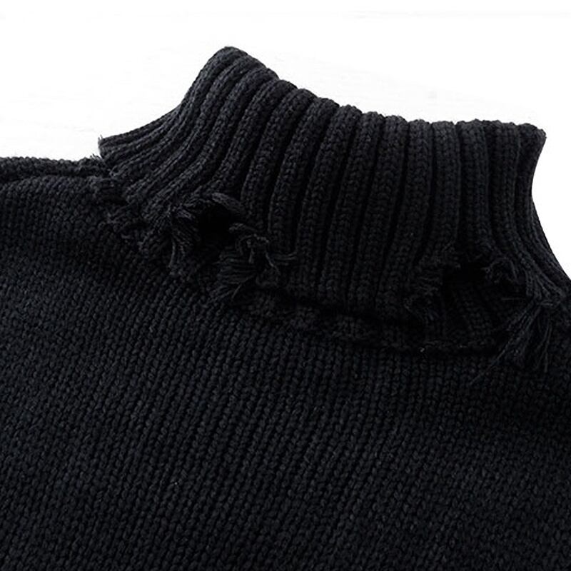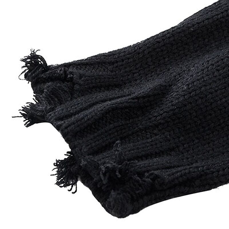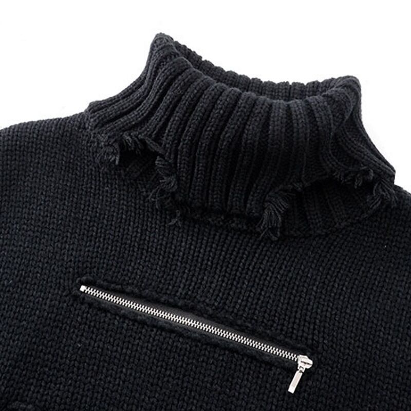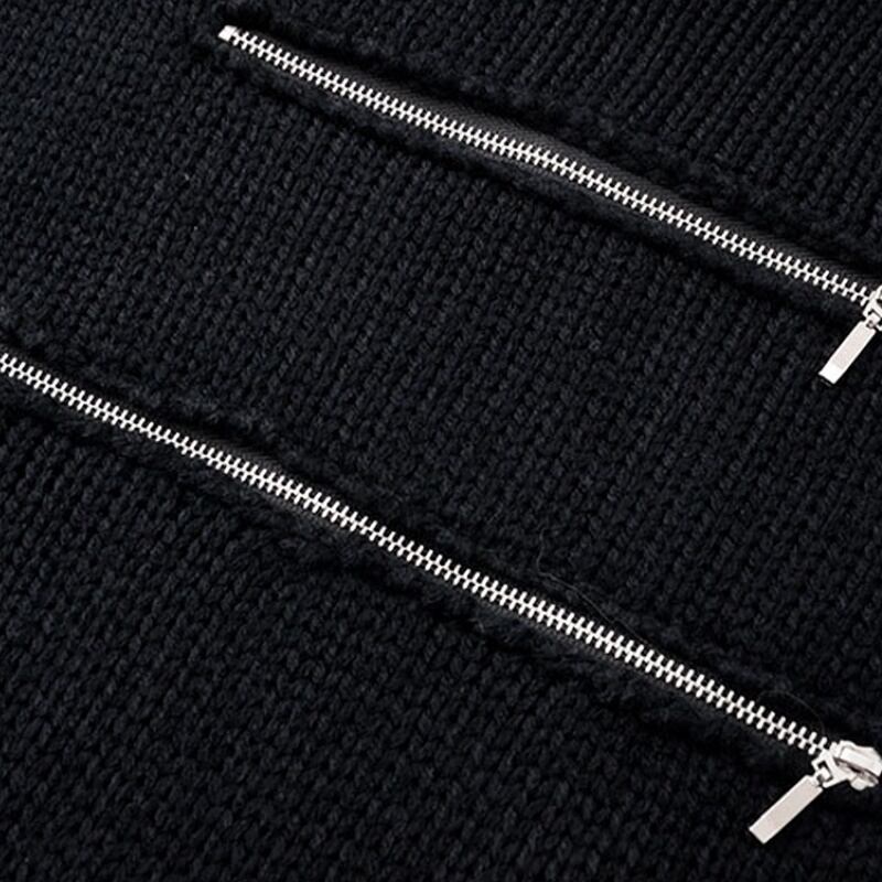 ジッパーやダメージ加工など細部に個性が光る、おしゃれなセーター。