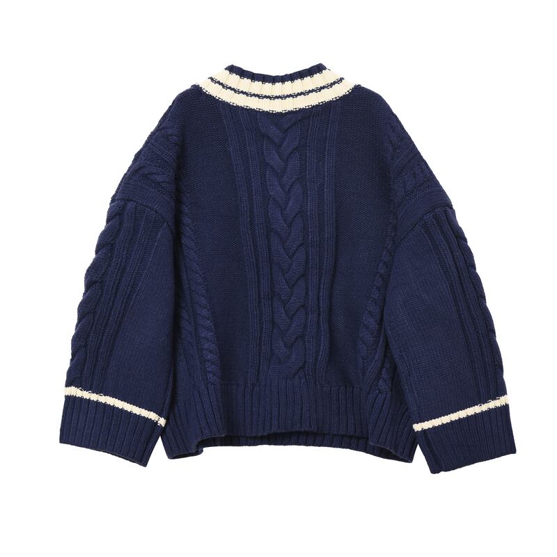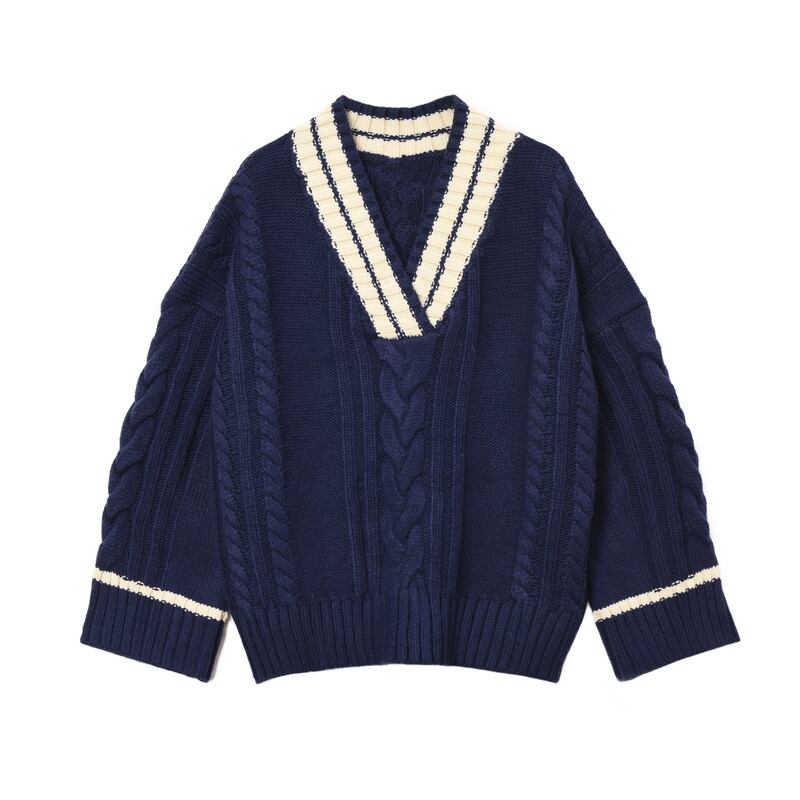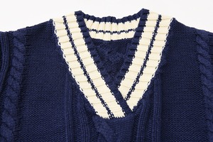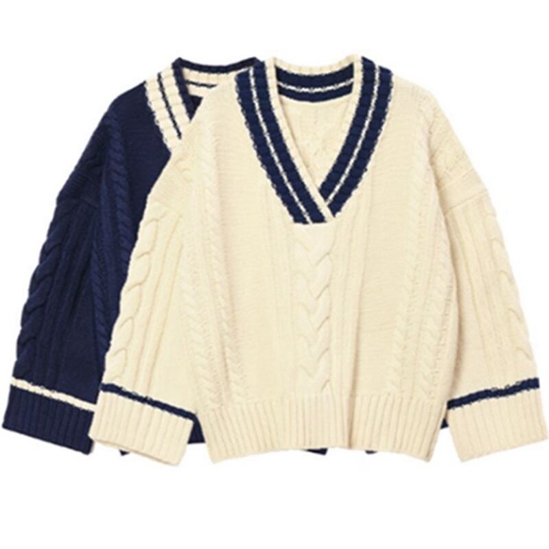 2カラー Vネック 長袖 ニット セーター *ks115
