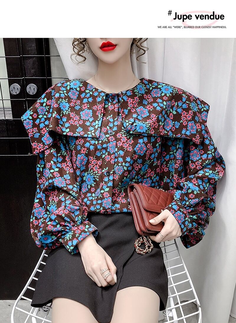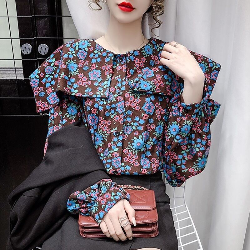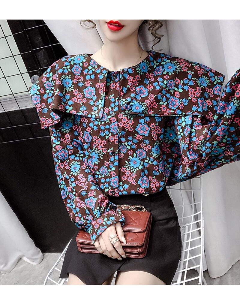 花柄 ラウンドネック 長袖 シャツ ブラウス *bl382